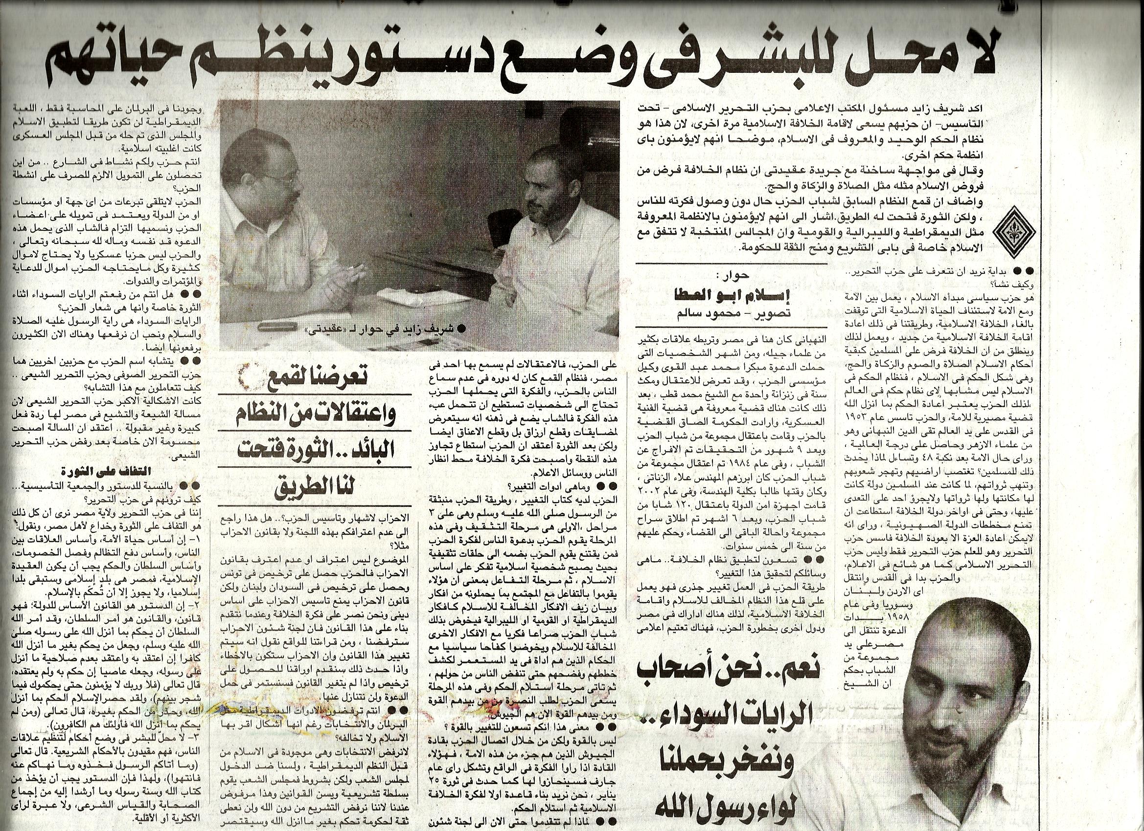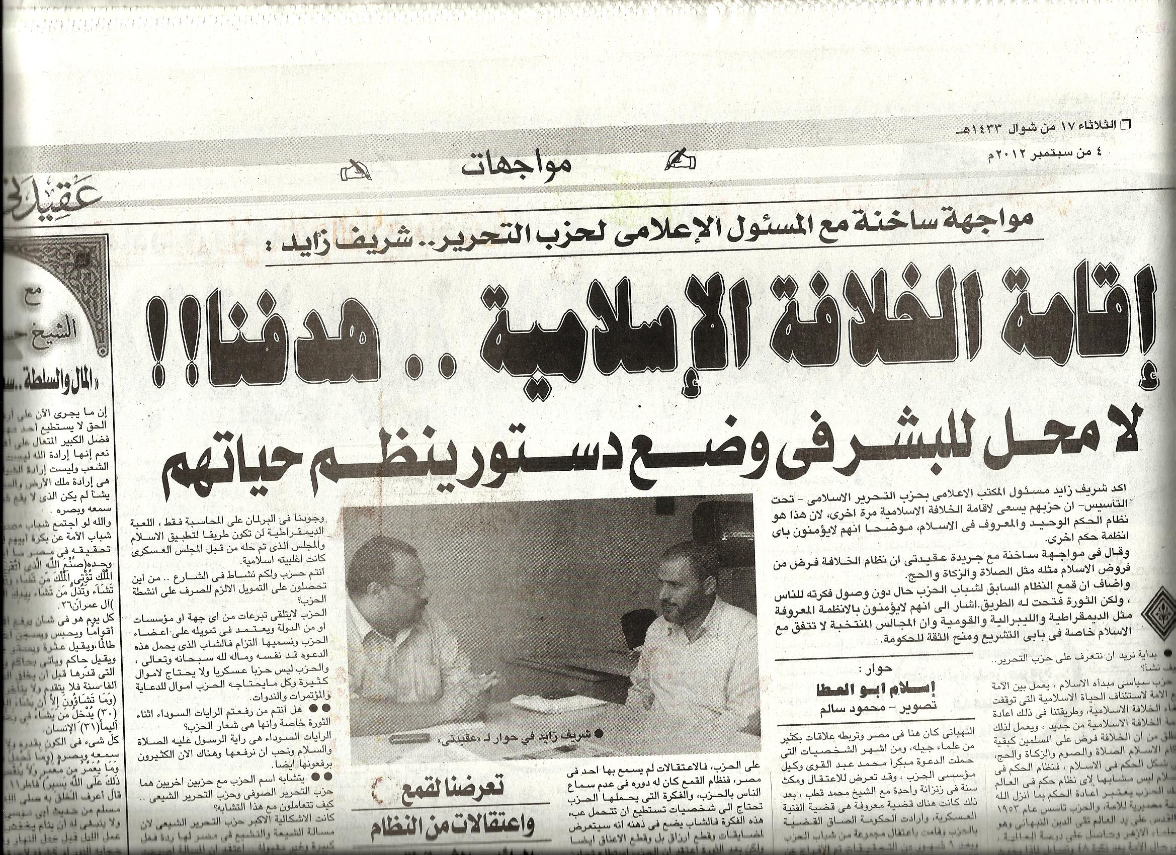 حوار أجراه رئيس المكتب الإعلامي لحزب التحرير في ولاية مصر مع صحيفة عقيدتي التابعة لجريدة الجمهورية الحكومية الرسمية