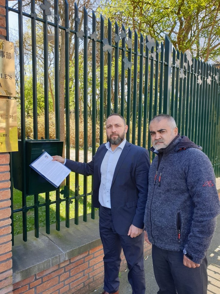 على أثر الهجمة الشرسة التي يتعرض لها أهلنا المسلمين الإيغور في تركستان الشرقية من قبل النظام الصيني المجرم، واستجابة لتوجيهات العالم الجليل عطاء بن خليل أبو الرشتة أمير حزب التحرير قام وفد من حزب التحرير / أوروبا بزيارة السفارة الصينية بالعاصمة الهولندية (لاهاي) لتسليمها بيانا صحفيا صادراً عن المكتب الإعلامي المركزي للحزب بعنوان "الخلافة ستحرر تركستان الشرقية وتخلص مسلمي الإيغور من مظالم الصين المجرمة" إلا أن السفارة رفضت استقبال الوفد، ورفضت استلام البيان، بل واستدعت الشرطة وطلبت منهم أن يحققوا مع أعضاء الوفد، وقد توقع وفد الحزب مسبقا هذه المعاملة الفظة من قبل طاقم السفارة، والتي لا تخرج عن إطار ما يقترفه النظام الصيني من جرائم بحق أهلنا المسلمين الإيغور في تركستان الشرقية. ويمكرون ويمكر الله والله خير الماكرين.