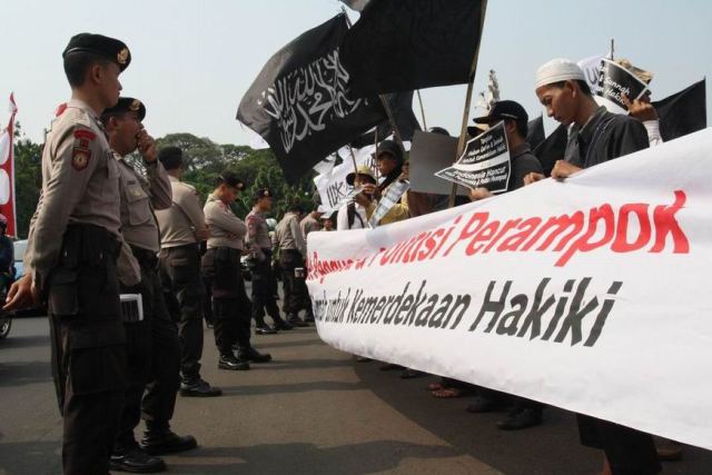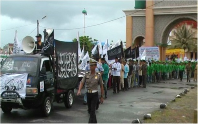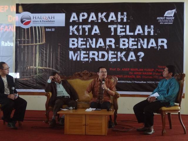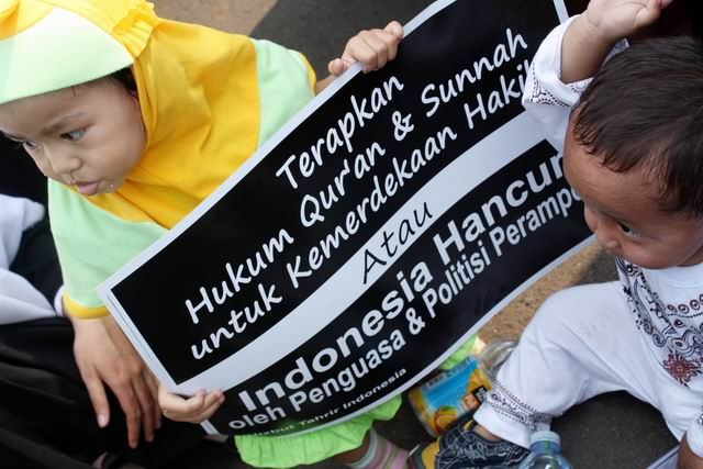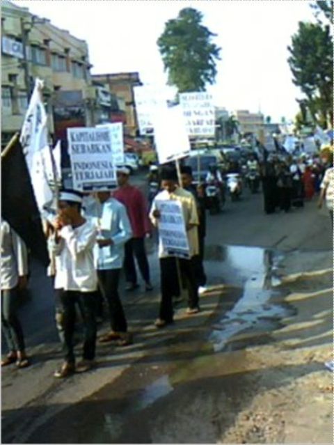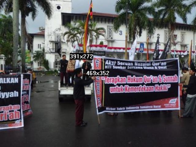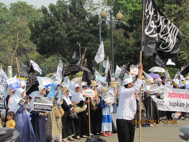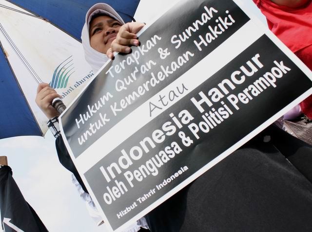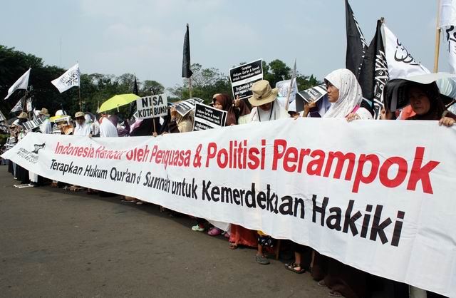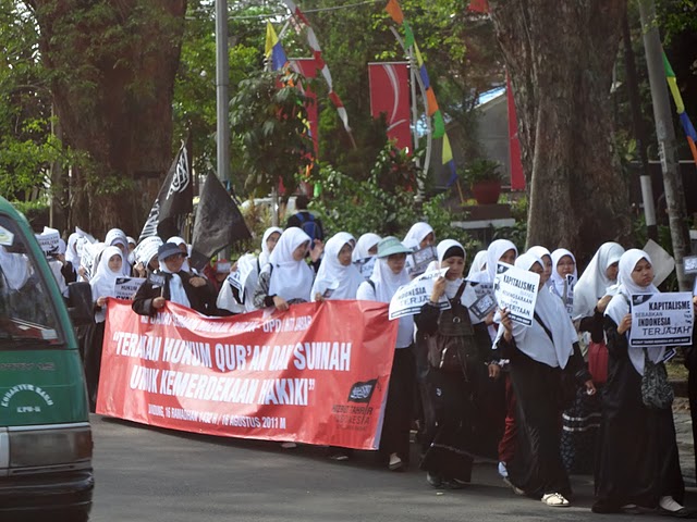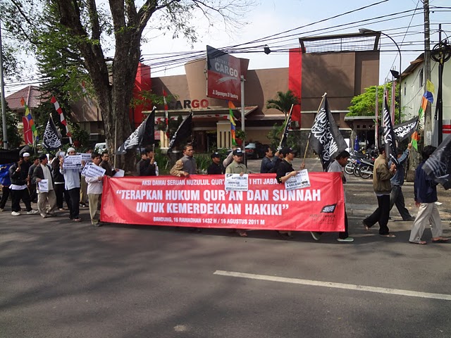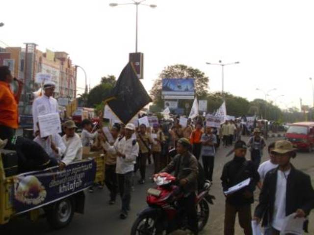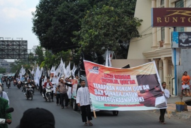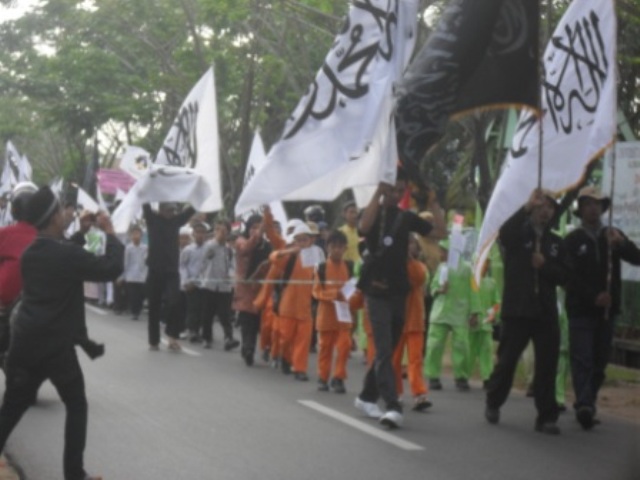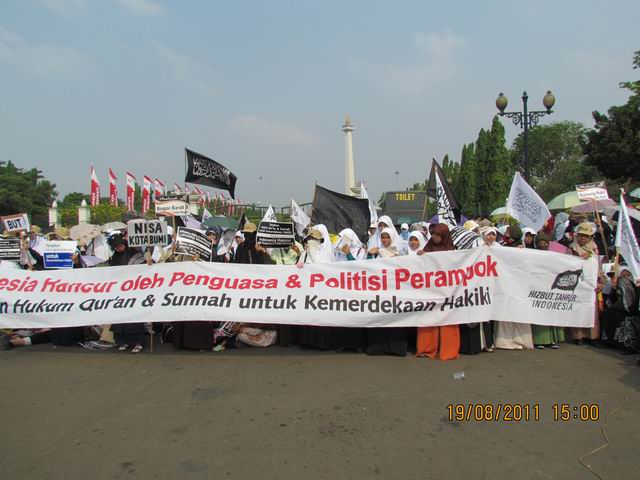 عقد حزب التحرير/ إندونيسيا مسيرات حاشدة وحلقات في مناطق مختلفة من إندونيسيا. دعا فيها المسلمين عامة والحكام خاصة إلى التمسك بالقرآن وسنة رسول الله صلى الله عليه وسلم والعمل بهما في الحياة اليومية وفي مجال السياسة والحكم خاصة. إن تطبيق القرآن والسنة هو ضمانة الاستقلال التام وسبيل الخروج الوحيد من جميع مشاكل الأمة في إندونيسيا وجميع العالم الإسلامي.