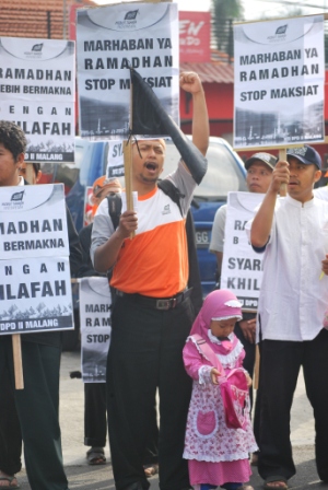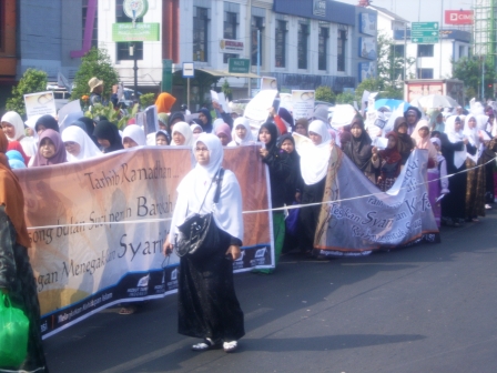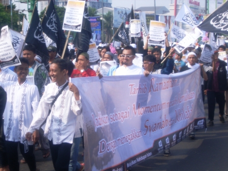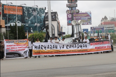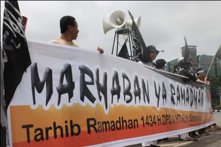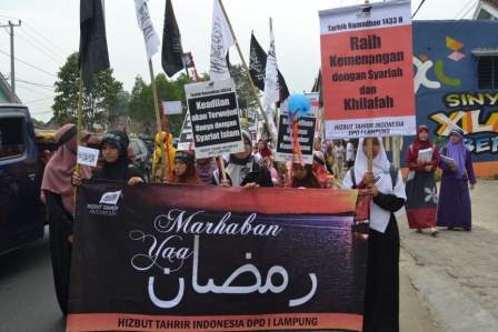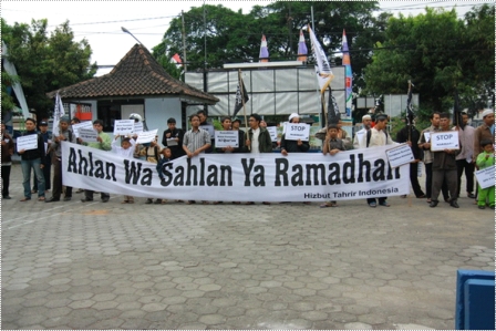 نظم حزب التحرير/ إندونيسيا أعمالاً مختلفة منها مواكب واحتفالات وزيارات إلى أشخاص بارزة ومراكز الشرطة. نشر الشباب وسط المواكب والاحتفلات وخلال الزيارات اصدارات و نشرات فيها نداء للمسلمين للقيام بصوم رمضان بأحسن ما يمكن خشوعا وتقرباً لله تعالى حتى ينالوا حكمة رمضان كاملة.