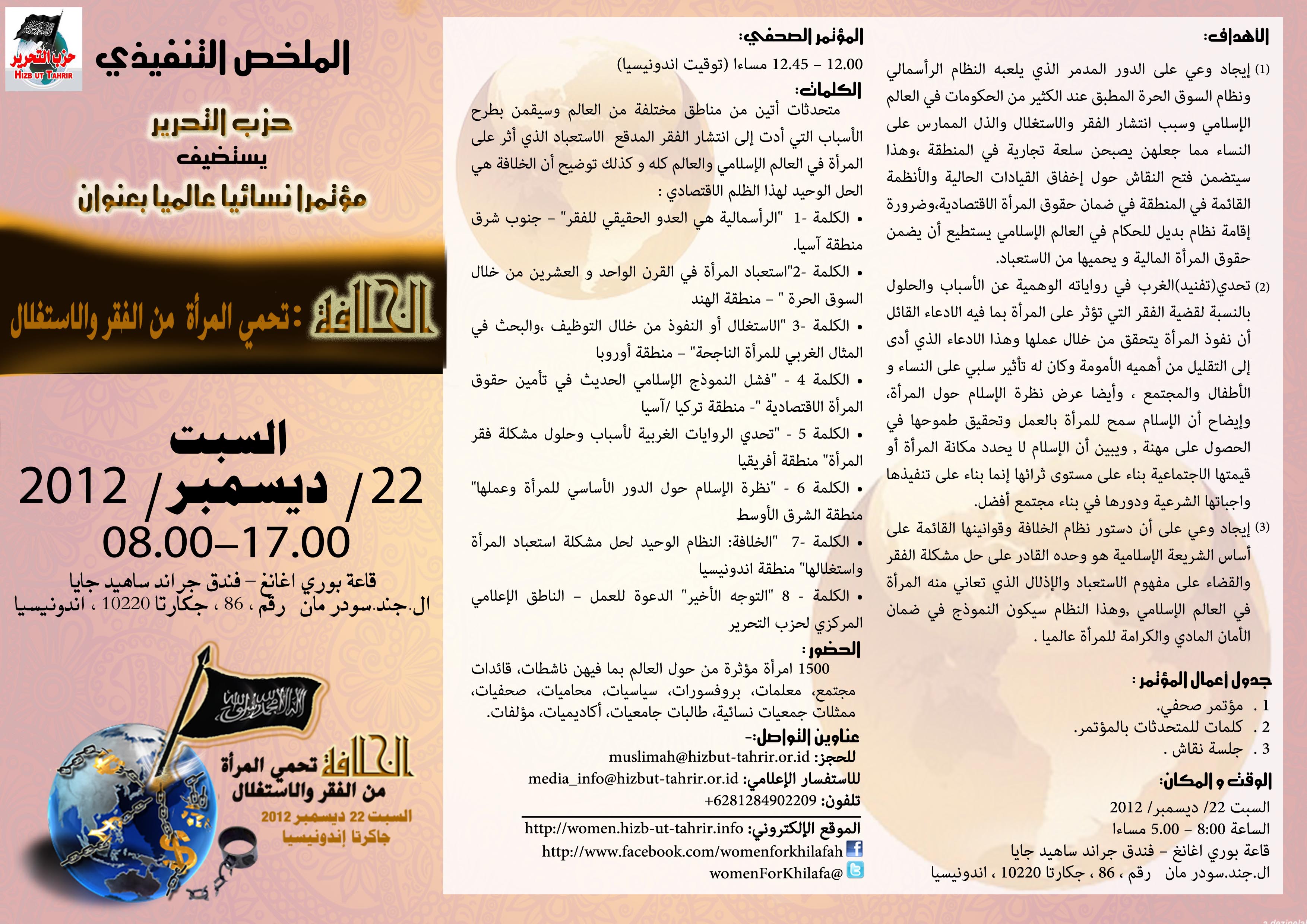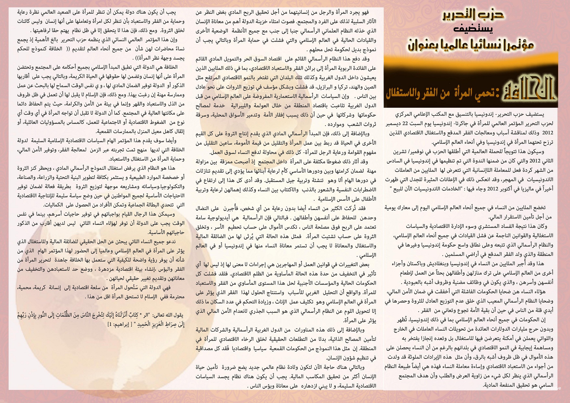 | بيان صحفي حزب التحرير يعقد مؤتمراً عالميّاً للنساء بعد يومين في جاكارتا |