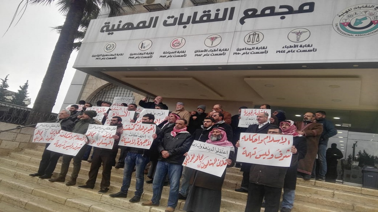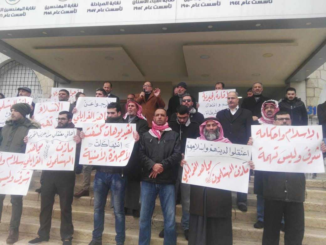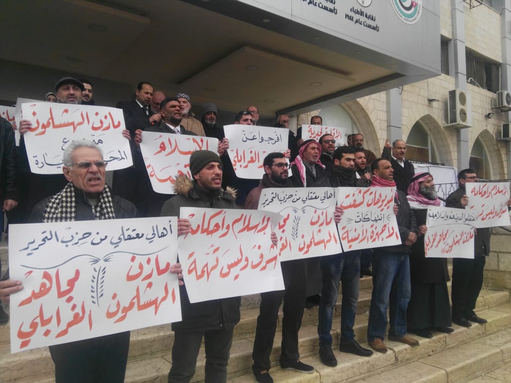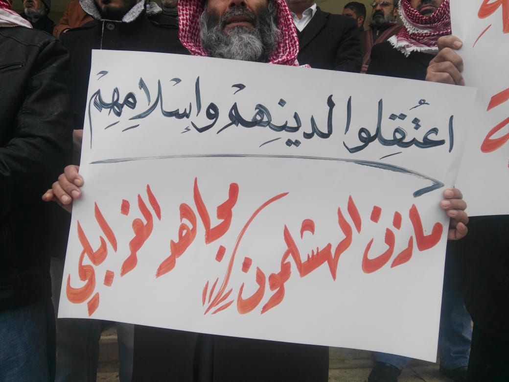 نفذ أهالي معتقلي وموقوفي شباب حزب التحرير وقفةً واعتصاما أمام مجمع النقابات المهنية في عمان، منددين خلالها بالاعتقالات والاعتداءات الأخيرة من قبل الأجهزة الأمنية وخصوصا المخابرات على شباب الحزب وترويع أهاليهم من النساء والأطفال، بالإضافة للموقوفين إدارياً وتعسفياً من قبل الحكام الإداريين.