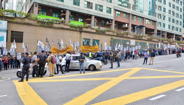 وبدأت المظاهرة بمسيرة طولها حوالي 100 متر إلى نقطة التجمع التي حددتها الشرطة الملكية الماليزية.