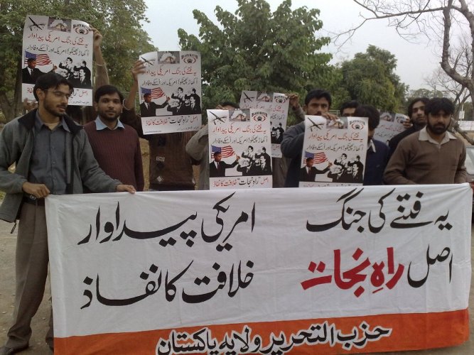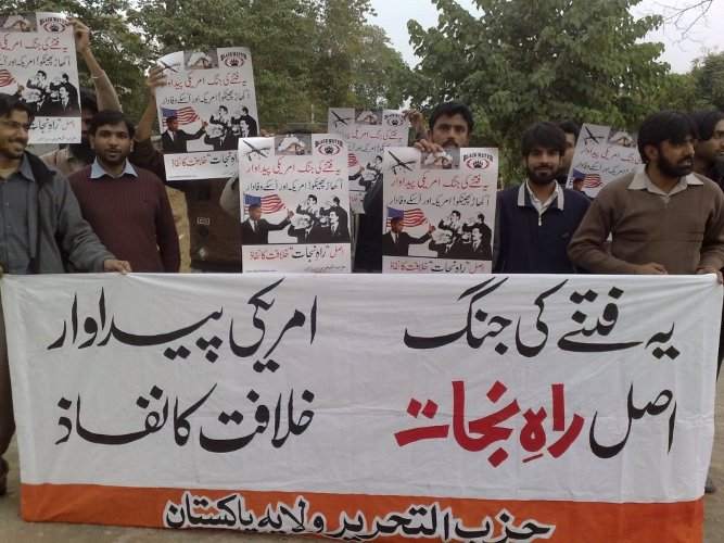 نظم حزب التحرير ولاية باكستان في 25/11/2009 مظاهرة في إسلام أباد خارج النادي الصحفي، بالرغم من ملاحقة الظلمة من الحكام، العاملين لمصلحة أمريكا. وقد أدان المتظاهرون تواطؤ الحكومة والسماح لأمريكا في القيام بالعمليات التفجيرية في البلاد مستخدمة شركاتها الخاصة من مثل شركة Blackwater. وقد طالب المتظاهرون بإنهاء الوجود الأمريكي وبإنهاء حرب "الفتنة" في وزيراستان من خلال إقامة دولة الخلافة والتي ستجيش الجيوش للقضاء على الوجود الصليبي