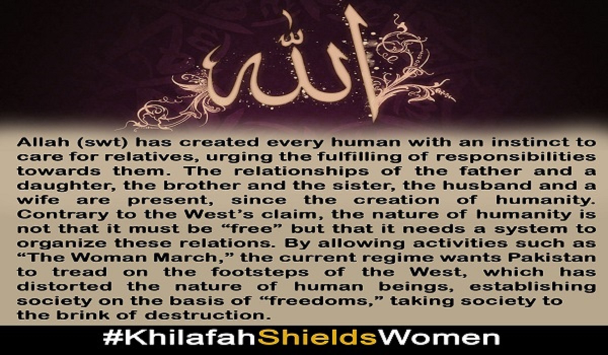 نظم حزب التحرير / ولاية باكستان حملة إعلامية واسعة على مواقع التواصل الإلكتروني بعنوان "الخلافة تحفظ المرأة" ردا على الترويج للنشاط الإفسادي "مسيرة المرأة" التي ستُنظم في 8 آذار/مارس 2020م تحت شعار "جسدي خياري"، وبفضل الله سبحانه فقد لاقت حملة الحزب تقديراً وتجاوبا من المسلمين المحبين للإسلام في باكستان.
