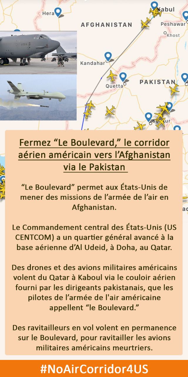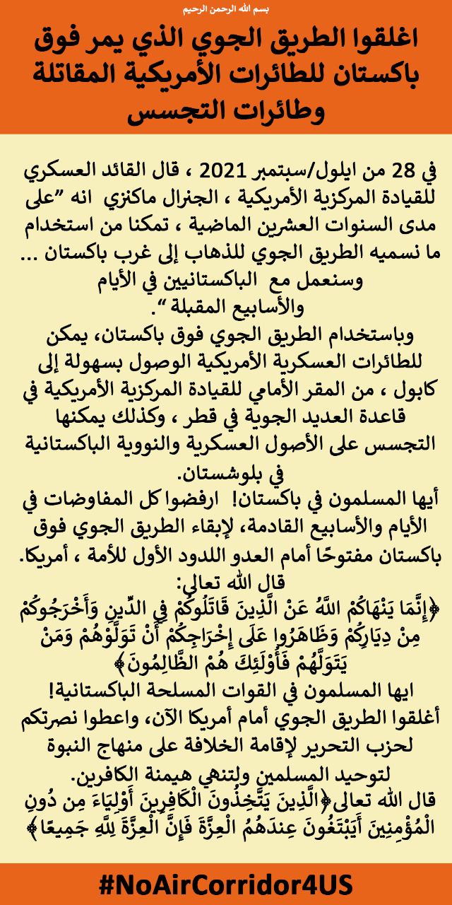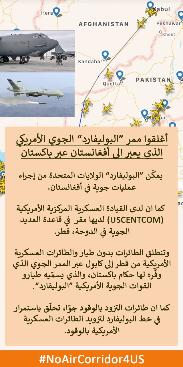 الجوي الذي يمر فوق باكستان أمام الطائرات الأمريكية المقاتلة وطائرات التجسس.أغلقوا الطريق الجوي أمام طائرات القتل الأمريكية"