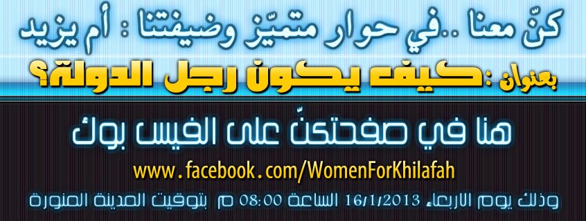 أجرى القسم النسائي في المكتب الإعلامي المركزي لحزب التحرير مقابلة من الأخت أم يزيد من فلسطين يوم الأربعاء 04 ربيع الأول 1434هـ الموافق 16 كانون الثاني/يناير 2013م في تمام الساعة الثامنة مساءً بتوقيت المدينة المنورة، حيث أعلن أدمن الصفحة افتتاح باب النقاش واستقبال الأسئلة من رواد الصفحة الكرام للضيفة الفاضلة الأخت أم يزيد لبدء ساعة النقاش في الموضوع الذي تم الإعلان عنه مسبقا وهو بعنوان "كيف يكون رجل الدولة؟"