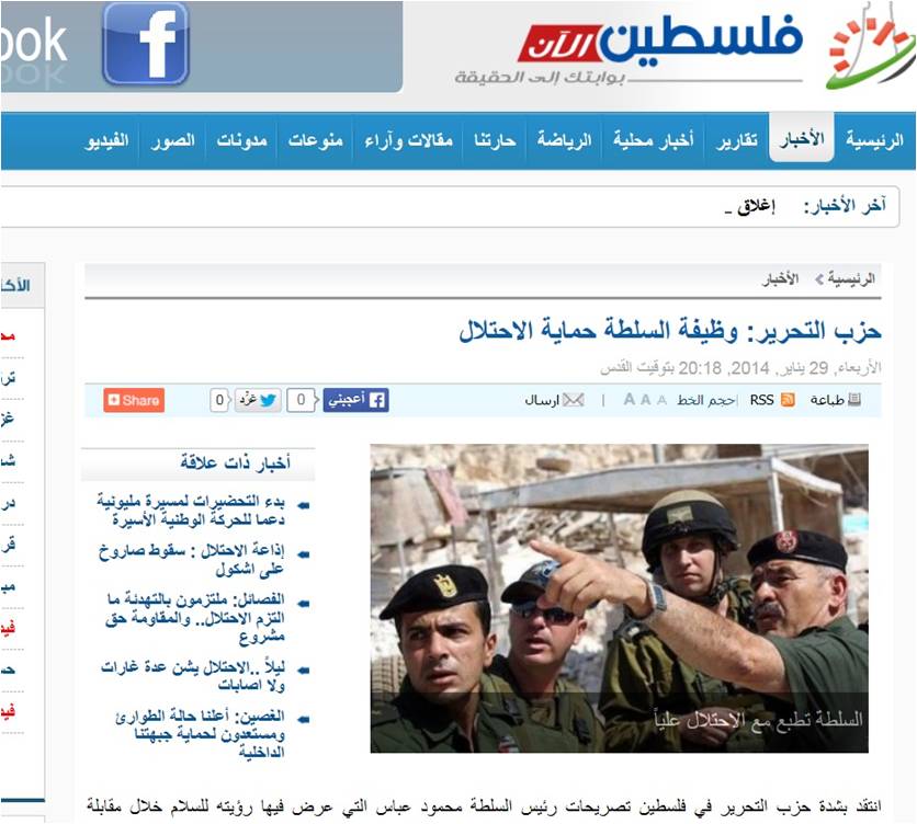بينما نشر موقع مصر 30 الخبر تحت عنوان: "التحرير: الشغل الشاغل للأجهزة الأمنية الفلسطينية هو حماية جيش الاحتلال".