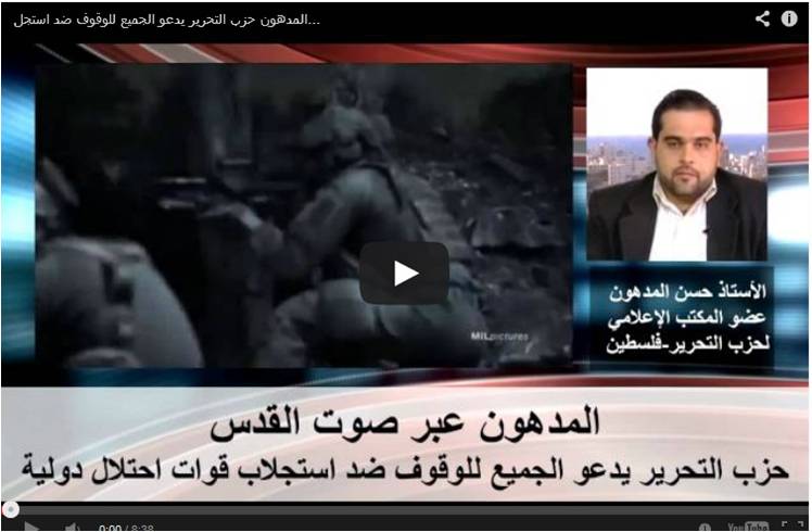 5- وكذلك قامت إذاعة صوت القدس ومقرها غزة باستضافة الأستاذ حسن المدهون، عضو المكتب الإعلامي لحزب التحرير في فلسطين، في حوار مباشر حول موقف الحزب من القوات الدولية.