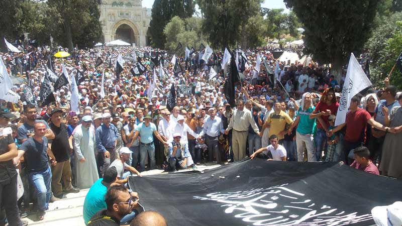 في الجمعة الأخيرة من رمضان احتشد الآلاف من أنصار حزب التحرير في ساحات المسجد الأقصى المبارك ليستمعوا لكلمة ألقاها أحد خطبائهم بعد صلاة الجمعة، وقد ارتفعت الألوية البيضاء والرايات السوداء في الاحتشاد الذي صدح بالتكبير والتهليل ونادى بإقامة الخلافة وتحريك جيوش المسلمين لتحرير المسجد الأقصى.