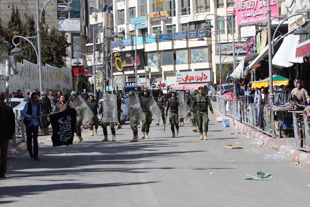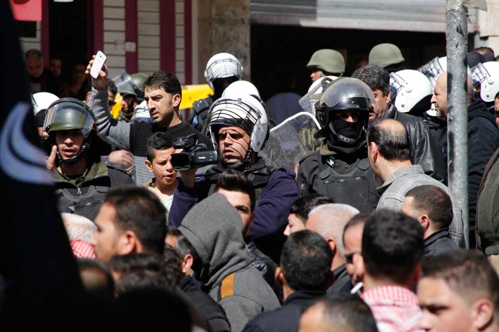لقد تجمع جمع غفير بالقرب من دوار ابن رشد في مدينة الخليل، ظهر اليوم السبت 2017/2/25، ورفعوا الرايات السوداء ولواء الرسول الأبيض، وهتفوا ضد الاعتقال السياسي، ونددوا بجرائم السلطة، وألقيت كلمة في الجموع التي حاولت السلطة تفريقها بالقوة والغاز المسيل للدموع، هذا بالرغم من الحواجز التي نصبتها السلطة على المفارق لمنع وصول الناس والمشاركة في الوقفة.