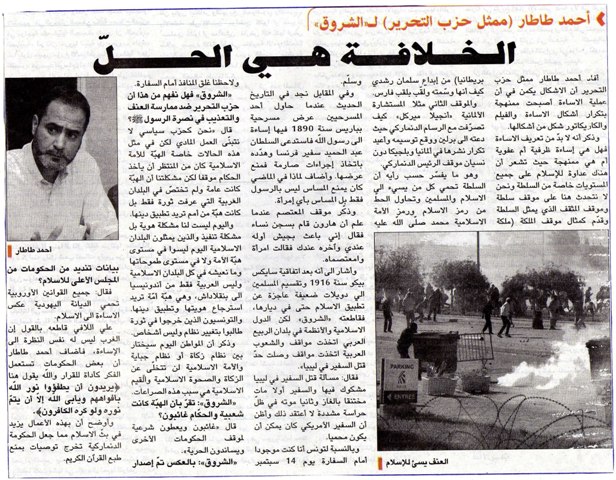 جريدة الشروق الخلافة هي الحل 08/10/2012