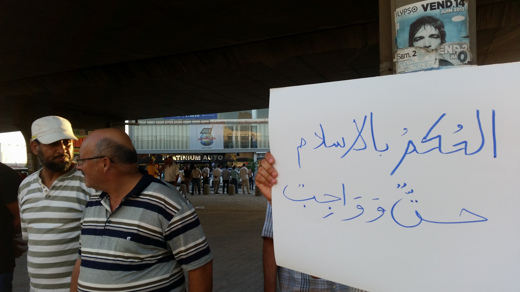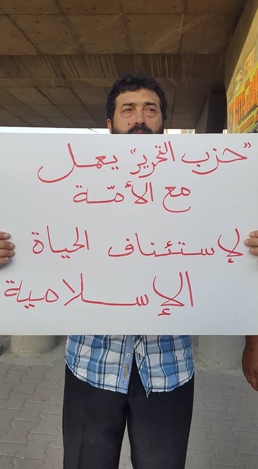 نظم حزب التحرير / ولاية تونس أمام مقره بأريانة وقفة احتجاجية رفضاً للوضع السياسي القائم في البلاد، وقد تم رفع شعارات من بينها: "أوقفوا تخاذل السياسيين وارتهانهم للأجنبي"، "العمل السياسي على أساس الإسلام حق وواجب"، "حزب التحرير هو الذي كشف جريمة نهب الثروات من قبل الشركات الأجنبية".