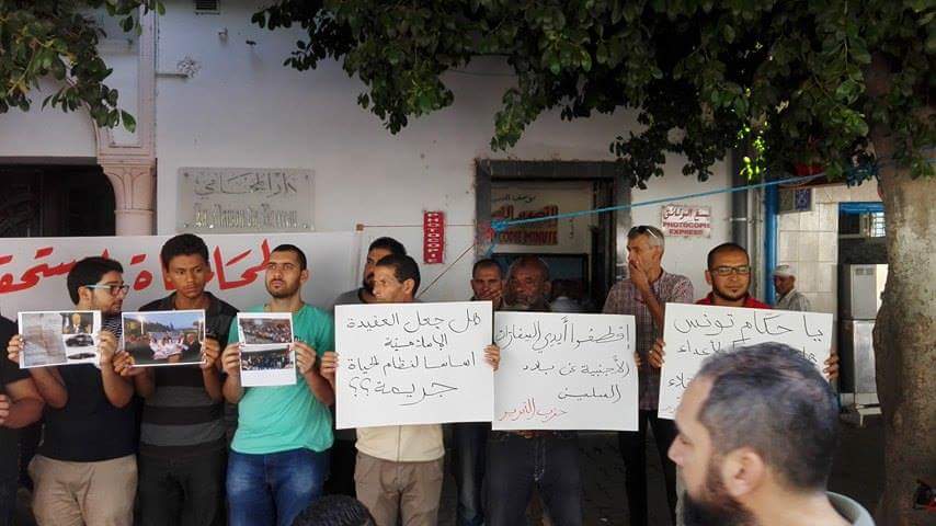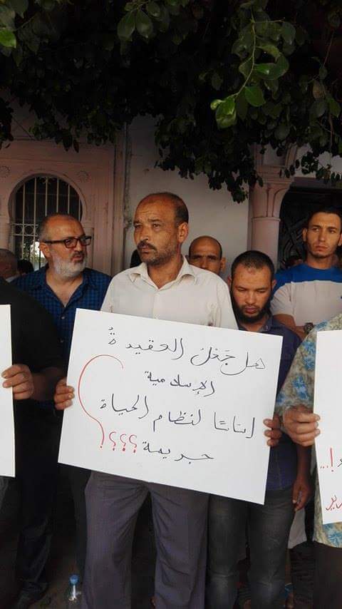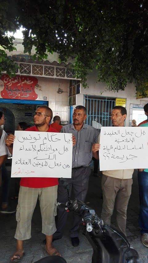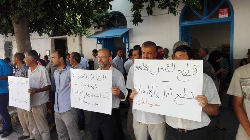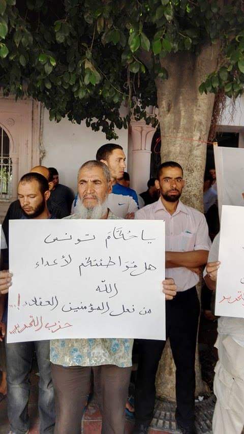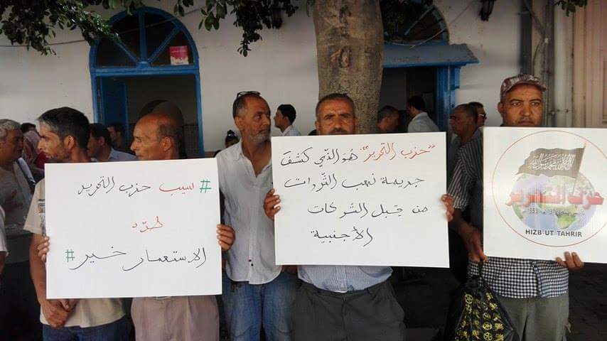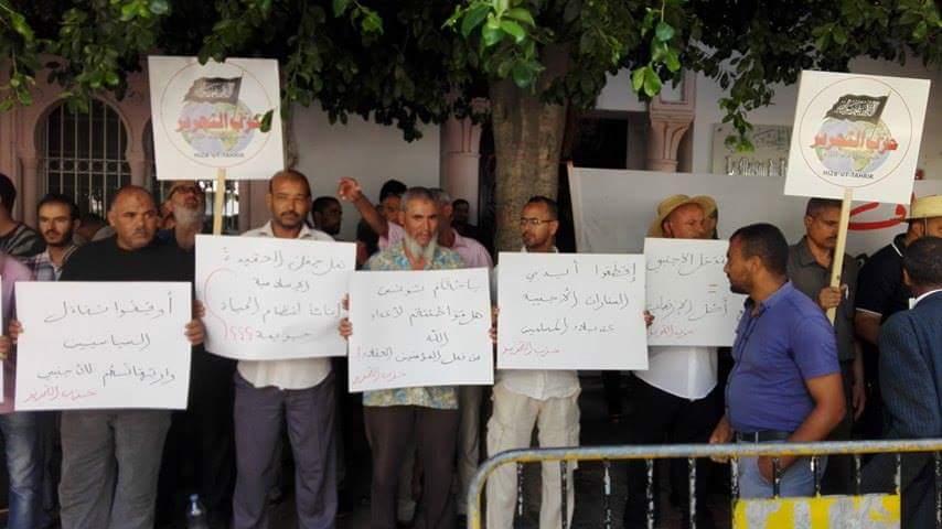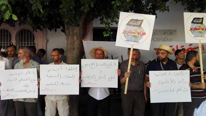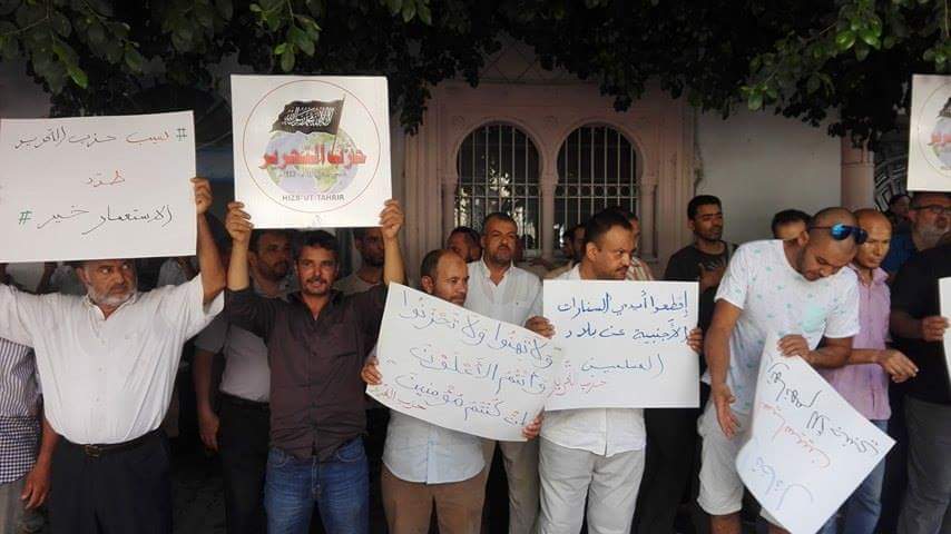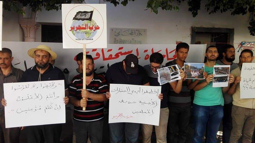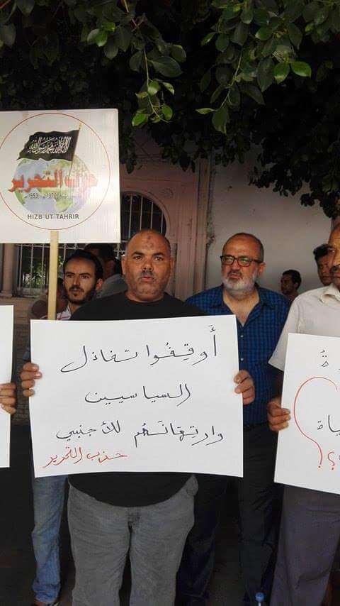 نظم حزب التحرير / ولاية تونس وقفة أمام المحكمة الابتدائية في تونس احتجاجاً على القرار الظالم بتجميد نشاط الحزب لمدة 30 يوما.