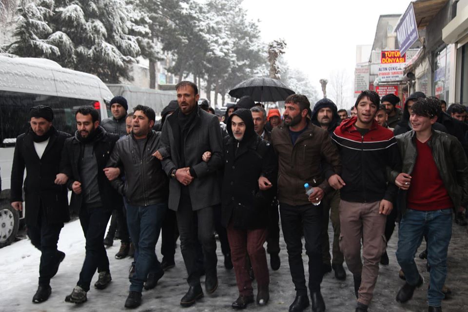 9) تاتفان/ بيتليس: بيان صحفي بعد صلاة الجمعة من أمام جامع تاتفان عباد الله. رغم البرد وهطول الثلج فقد تجمع المسلمون أمام المسجد وساندوا هذه الوقفه ضد الظلم