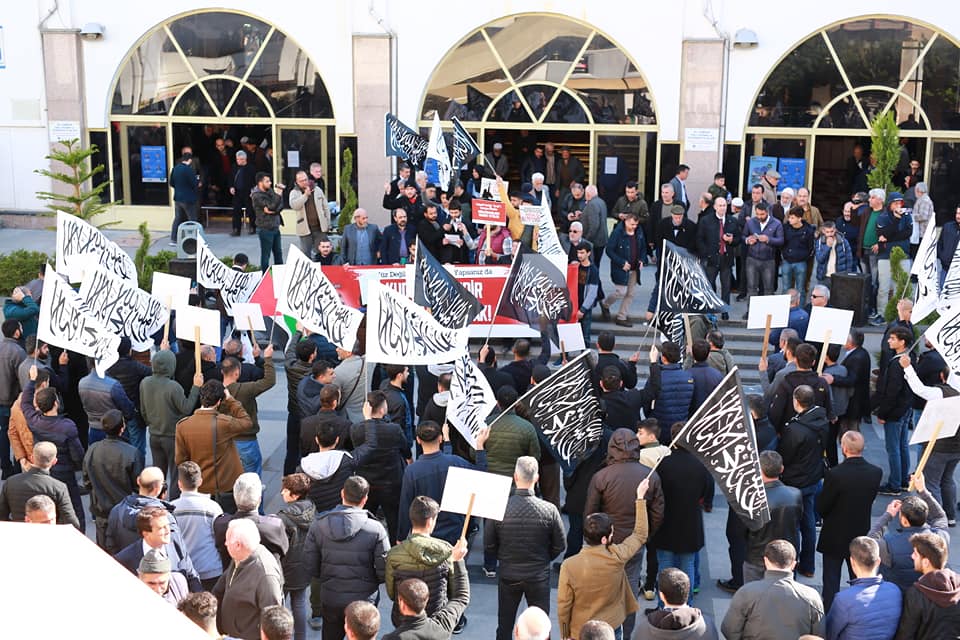 نشكر جميع المسلمين الغيورين الذين شاركوا في البيانات الصحفية ونسأل الله أن يرضي عنهم، وندعو المسلمين مرة أخرى إلى الاحتجاجات والبيانات الصحفية، التي ستعقد في مدن أخرى في تركيا يومي الجمعة والأحد، ونقول: