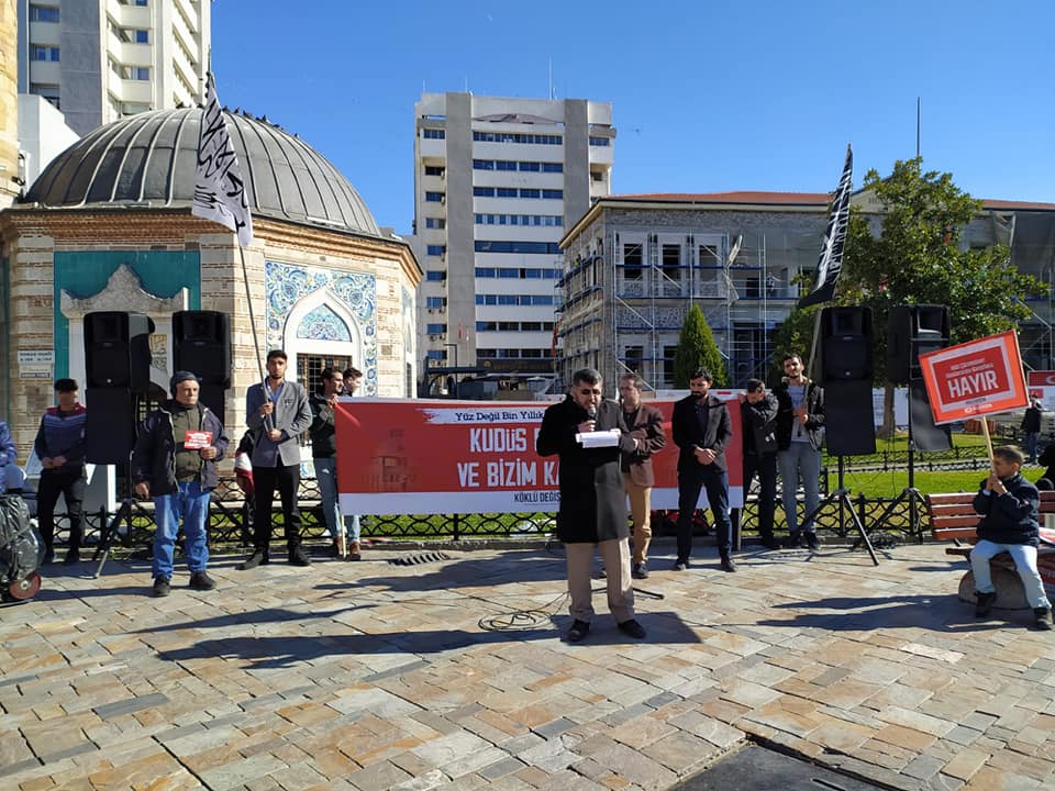 في أكثر من ثمانية مدن رئيسية في أرجاء تركيا نظم حزب التحرير / ولاية تركيا بعد صلاة الجمعة تحت شعار "القدس لنا وستبقى لنا" وقفات احتجاجية قرئ خلالها بيان صحفي ردا على "صفقة القرن" التي أعلن عنها ترامب المجرم.