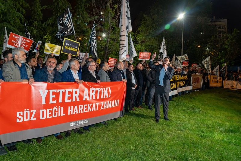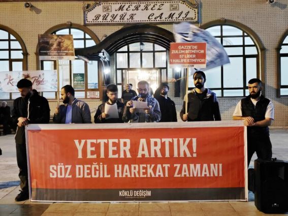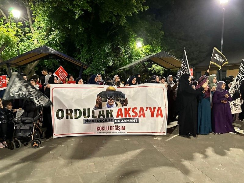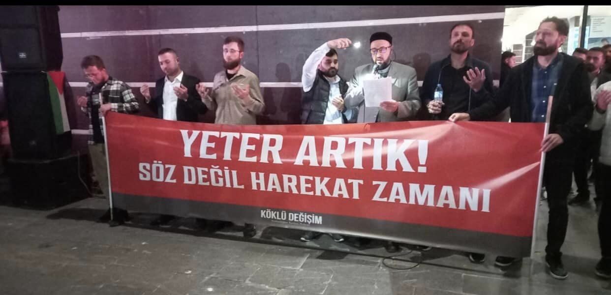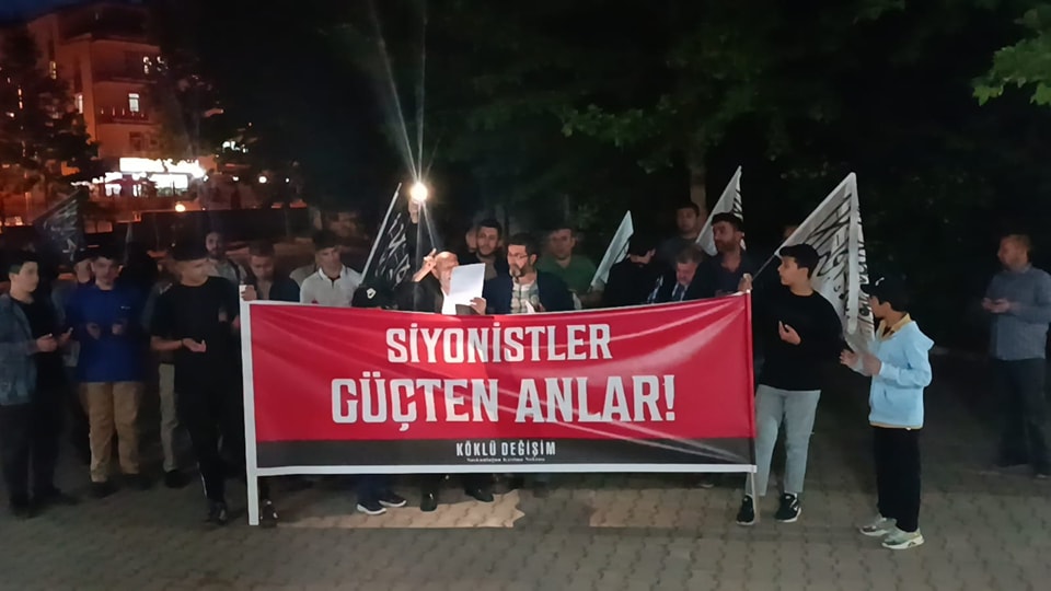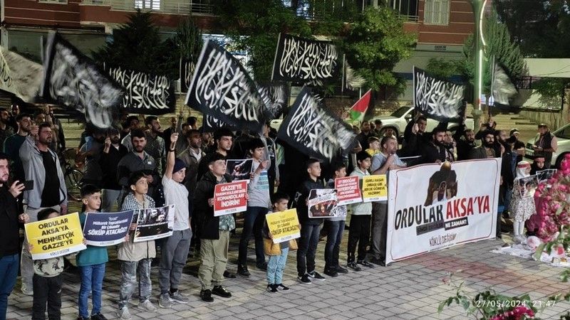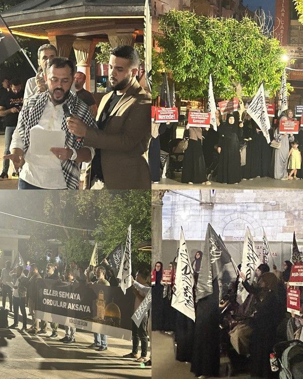 أمام المجازر الوحشية (الإبادة الجماعية) المتواصلة منذ ما يزيد عن سبعة أشهر، التي يرتكبها كيان يهود المجرم بحق المسلمين العزل في قطاع غزة والتي أدت إلى استشهاد وإصابة أكثر من 120 ألاف مسلم ومسلمة حتى الآن، نظم حزب التحرير / ولاية تركيا مظاهرات ليلية واسعة في 25 موقعاً استنكاراً للمجازر الوحشية التي يرتكبها المغضوب عليهم في قطاع غزة والتي اشتدت وطأتها هذه الأيام على المسلمين في رفح على وجه الخصوص.
