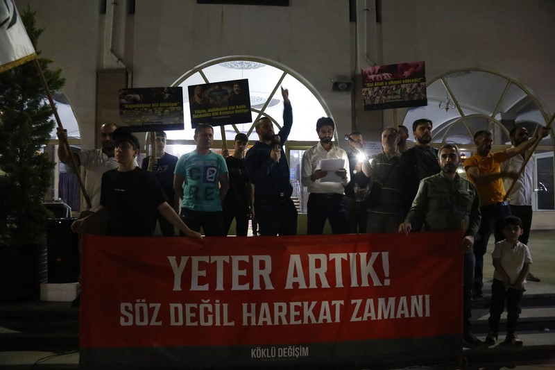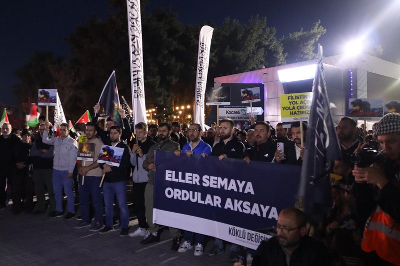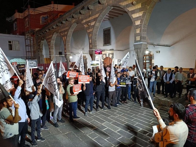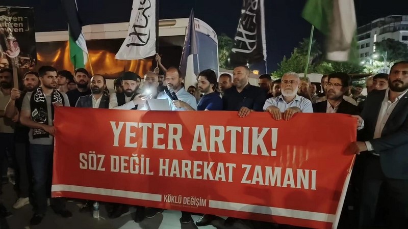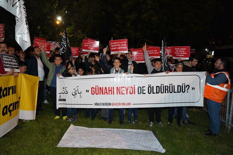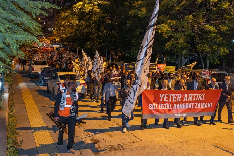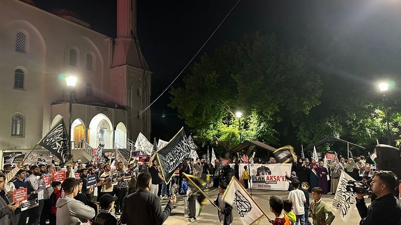أمام المجازر الوحشية (الإبادة الجماعية) المتواصلة منذ ما يزيد عن سبعة أشهر، التي يرتكبها كيان يهود المجرم بحق المسلمين العزل في قطاع غزة والتي أدت إلى استشهاد وإصابة أكثر من 120 ألاف مسلم ومسلمة حتى الآن، نظم حزب التحرير / ولاية تركيا مظاهرات ليلية واسعة في 25 موقعاً استنكاراً للمجازر الوحشية التي يرتكبها المغضوب عليهم في قطاع غزة والتي اشتدت وطأتها هذه الأيام على المسلمين في رفح على وجه الخصوص.