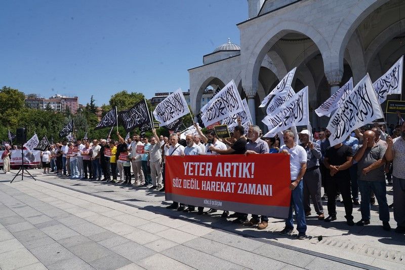 أمام المجازر الوحشية (الإبادة الجماعية) المتواصلة منذ عشرة أشهر، التي يرتكبها كيان يهود المجرم بحق المسلمين العزل في قطاع غزة والتي أدت إلى استشهاد وإصابة أكثر من 140 ألف مسلم ومسلمة حتى الآن، نظم حزب التحرير / ولاية تركيا عقب صلاة الجمعة وقفات في مدينة أنقرة ومدينة وآن ومدينة ديار بكر تحت عنوان: