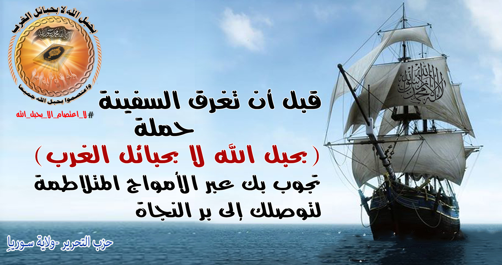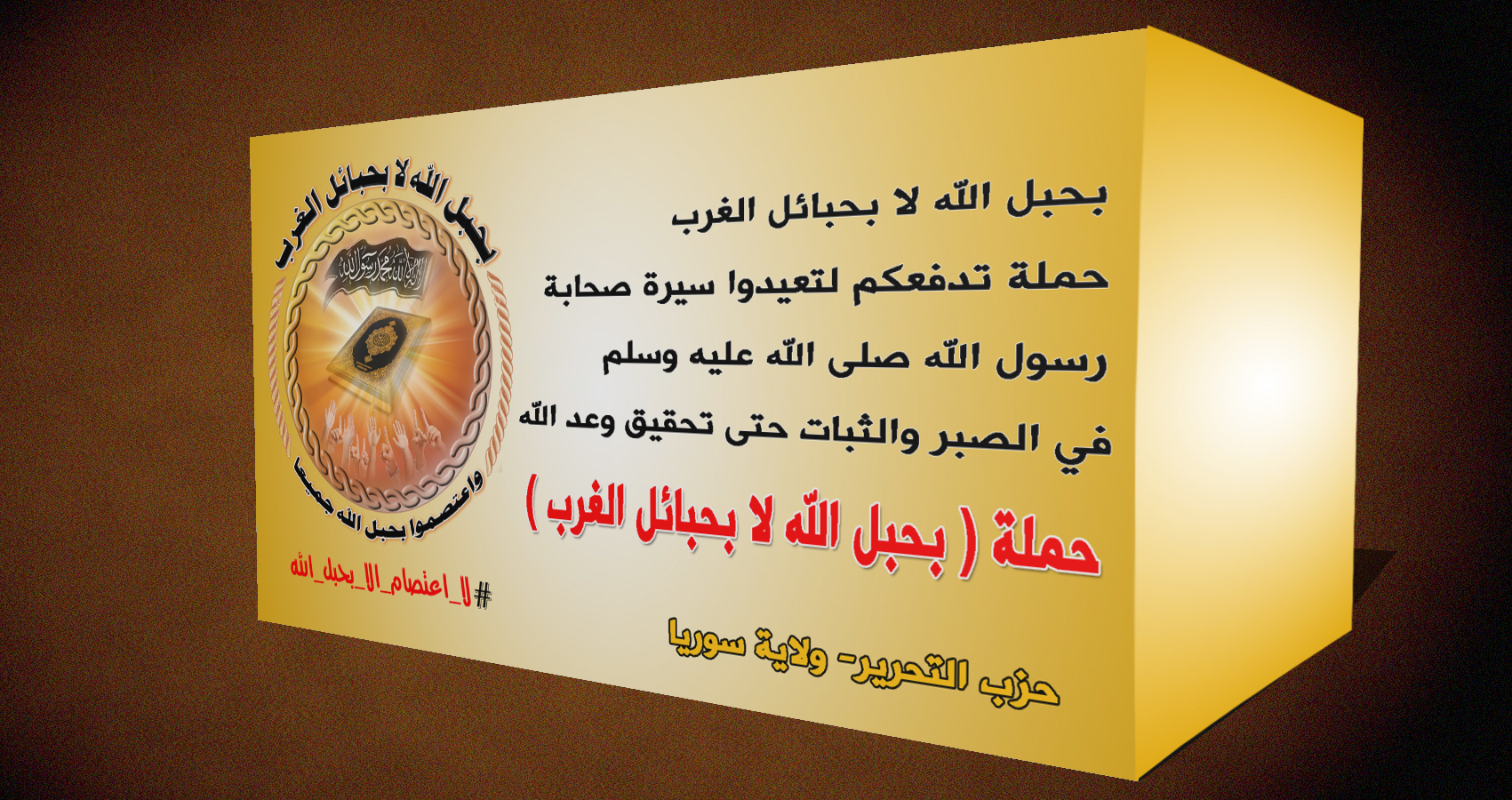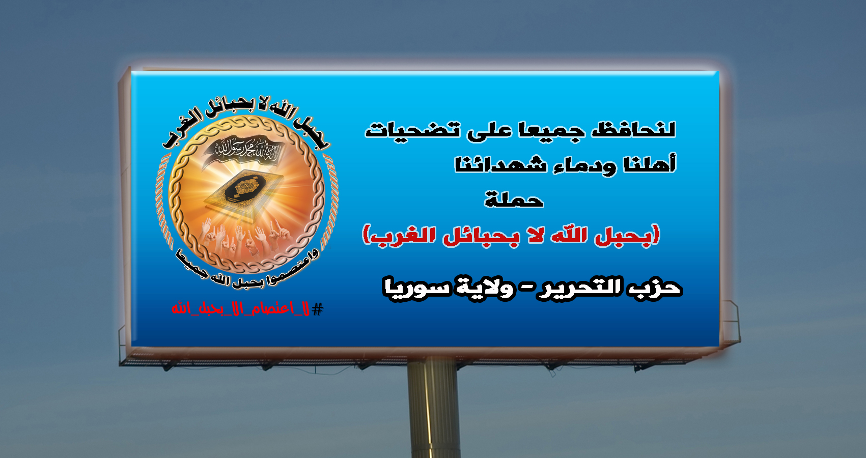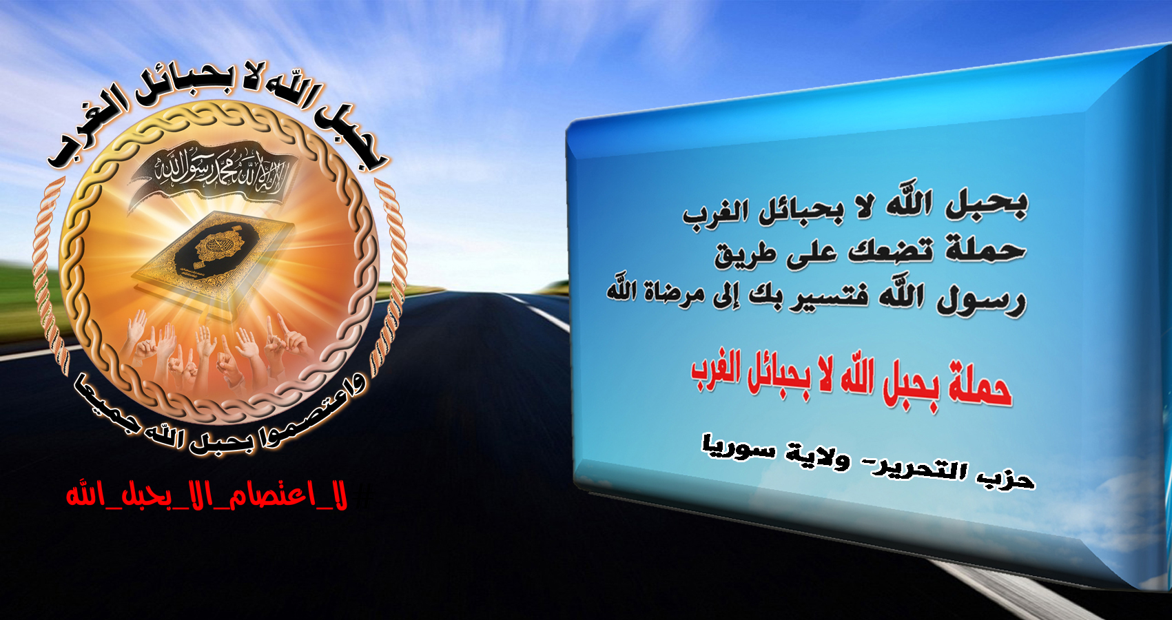 لا شك أن الغرب الكافر يعمل ليل نهار على منع عودة الخلافة الراشدة على منهاج النبوة ويستخدم في ذلك كل أدواته وأساليبه لإجهاض ثورة الشام المباركة وحيث أن الغرب الكافر يعمل على تجميع الفصائل خلف قيادة سياسية عميلة تخوض فيما بعد غمار مفاوضات نقل السلطة للوصول إلى الحل السياسي المعد على الطريقة الأمريكية والذي يجهض ثورة الشام ويهدر تضحيات المسلمين ويثبت العلمانية كنظام مفروض على المسلمين تحت مسمى حل الأزمة وغيرها من المسميات التضليلية، ولهذا كله فإن حزب التحرير / ولاية سوريا يعلن عن إطلاق حملة واسعة بعنوان "بحبل الله لا بحبائل الغرب" لكشف الحقائق وتوحيد الصفوف.