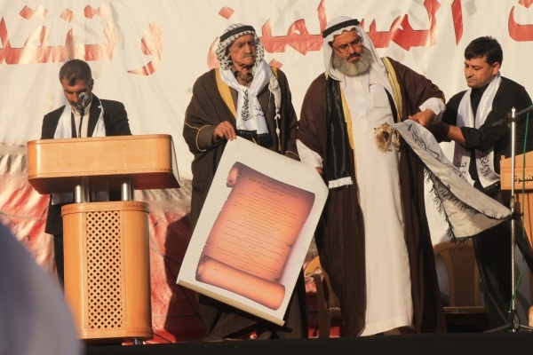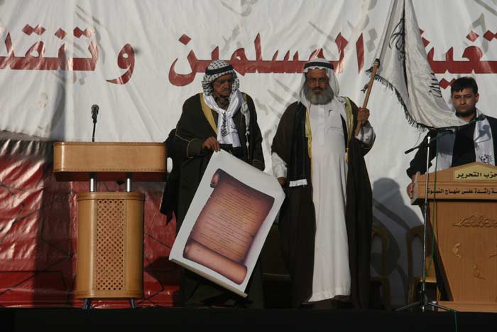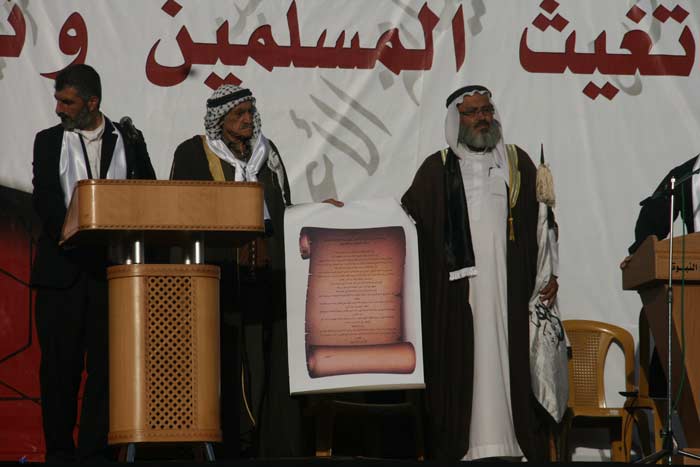 في مؤتمر الخليل الضخم الذي نظم يوم السبت 29 رجب الفرد 1434هـ الموافق 08 حزيران/يونيو2013م، وبحضور عشرات الآلاف من وجهاء عشائر فلسطين، وأهالي محافظة الخليل وبيت لحم، رجالا ونساءً، أعلن شيخ وجهاء عشائر فلسطين الحاج عبد المعطي السيد الحرباوي، عن توقيع وجهاء العشائر في فلسطين على ميثاق لنصرة إقامة الخلافة.
