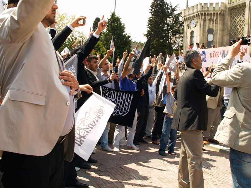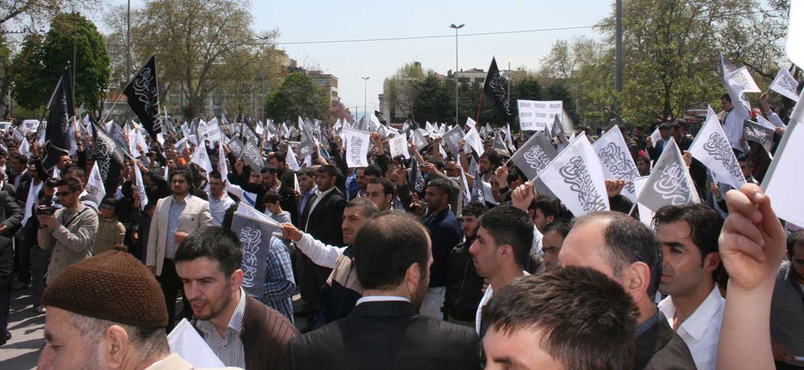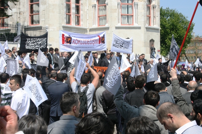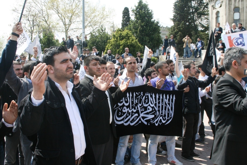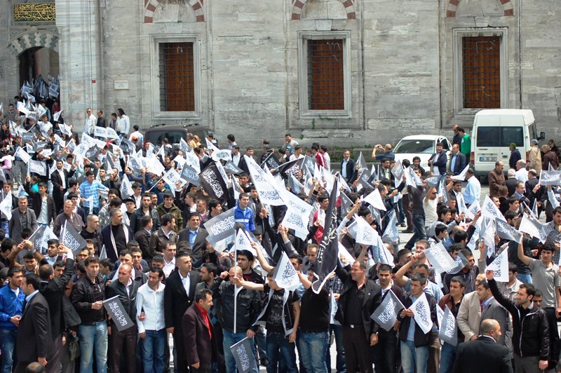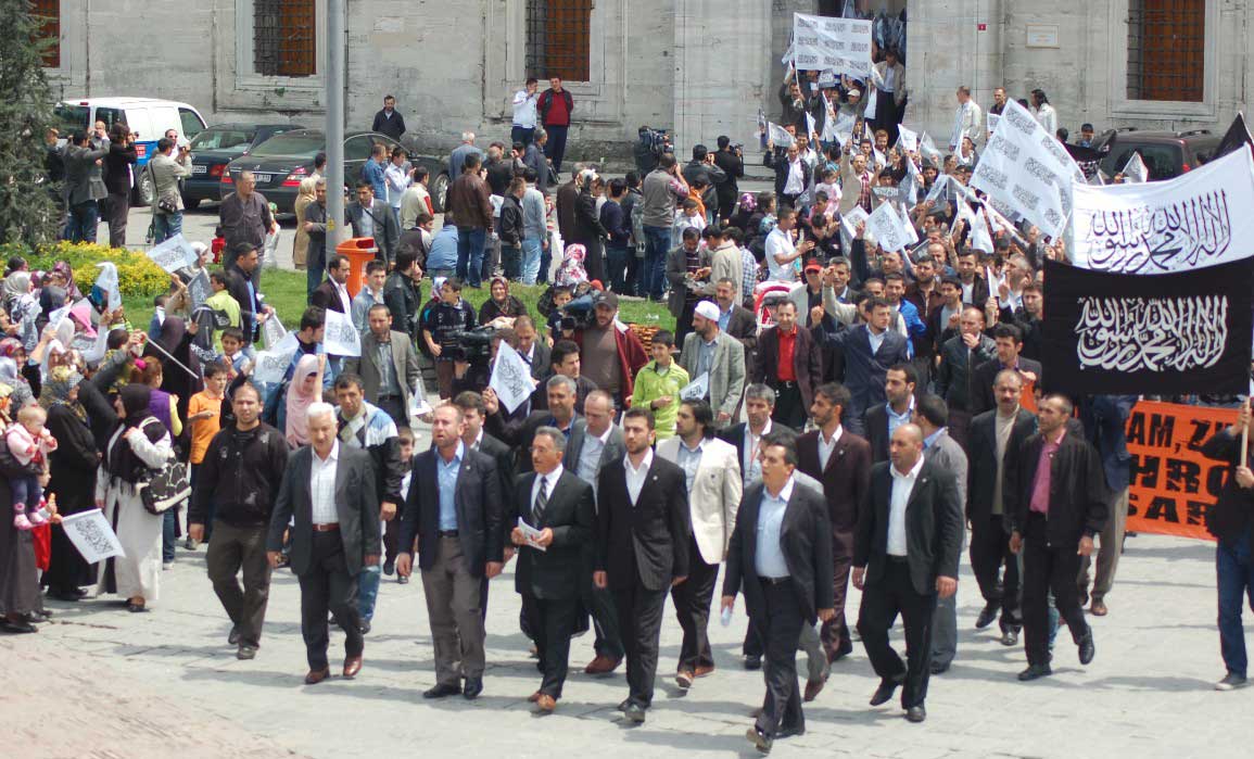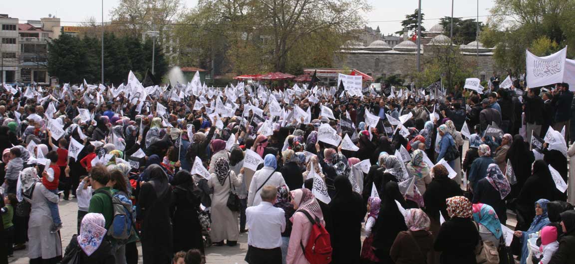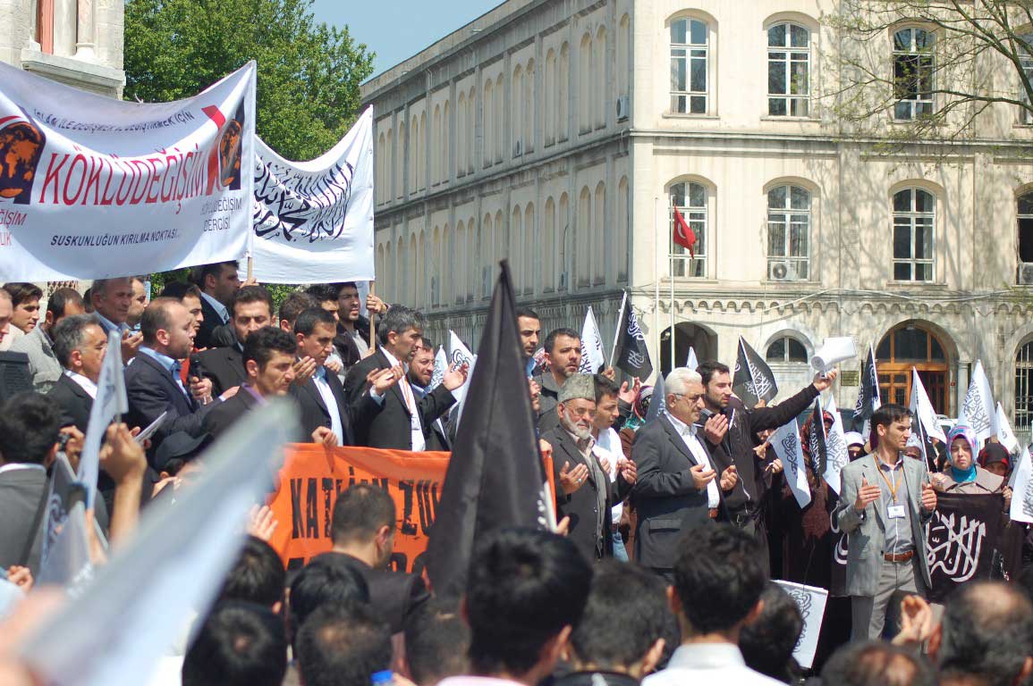 بحمد الله وفضله نظمت مجلة التغيير الجذري التي يصدرها شباب حزب التحرير في ولاية تركيا اليوم الأحد الموافق 05 جمادى الآخرة 1432 هـ - 08 أيار/مايو 2011م عقب صلاة الظهر مباشرة اعتصاماً حاشداً في ساحة جامع بايزيد في اسطنبول بعنوان "فلتوقف مجازر ظالم سوريا/الأسد"؛ وذلك للتنديد بالمجازر الوحشية التي يقترفها النظام السوري تجاه المسلمين العزل في سوريا. وقد شارك نحو أربعة آلاف مسلم ومسلمة في هذه الفعاليات التي نظمتها المجلة والتي شارك فيها تحت مظلتها عدد من الجمعيات والأوقاف والمؤسسات الإسلامية منها: جمعية أُزغُر دِر (Özgür Der) ووقف أكداف (Akdav) ومؤسسة إغاثة حقوق وحريات الإنسان (İHH)، حيث رفع المشاركون رايات العقاب السوداء رايات دولة الخلافة والألوية البيضاء وأطلقوا التكبيرات وحملوا يافطات تندد بالمجازر الوحشية التي يرتكبها نظام الأسد الطاغوتي تجاه إخواننا المسلمين في سوريا. وقد حملت اليافطات والشعارات التي رفعت خلال الاعتصام عبارات جاء فيها: "مجازر، ظلم، فساد، قهراً لك بشار الأسد"، "لا إله إلا الله، الخلافة وعد الله".