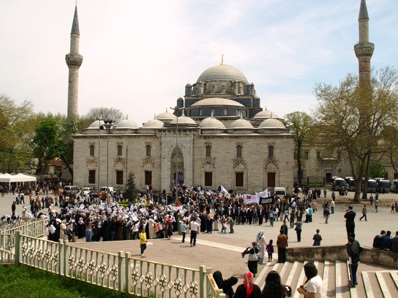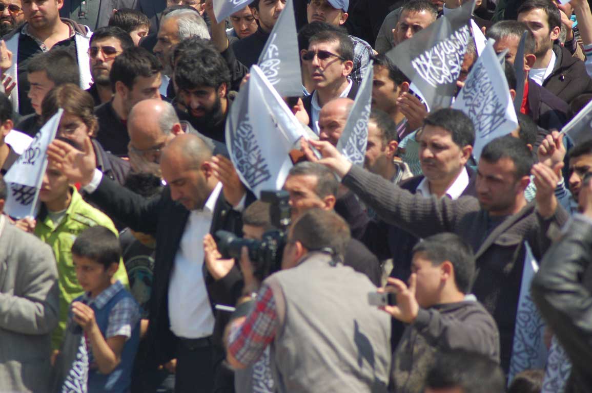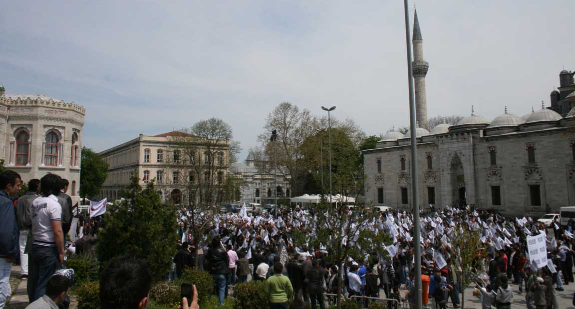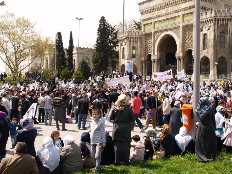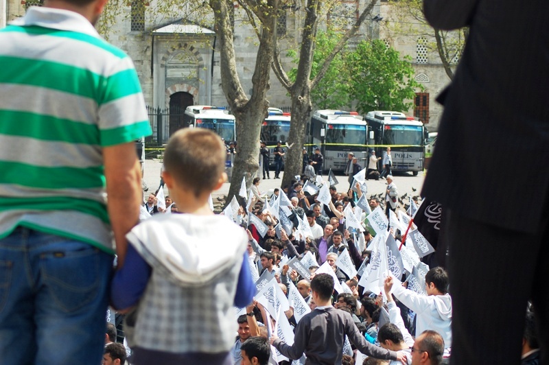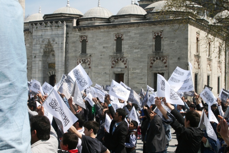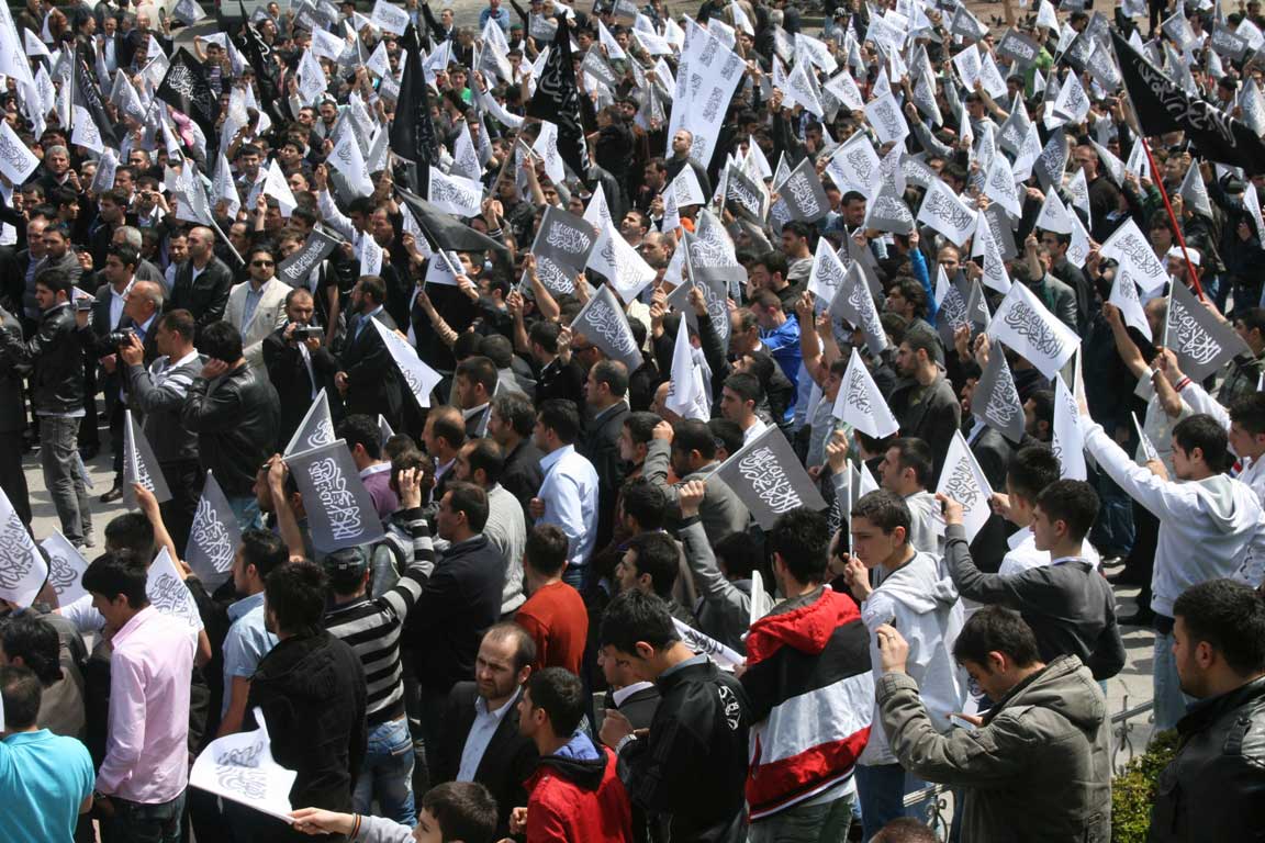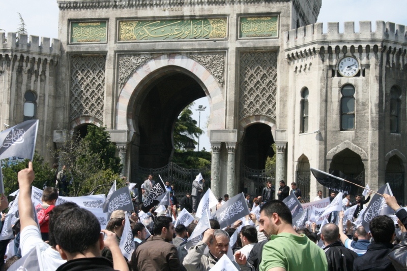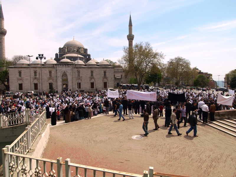 بحمد الله وفضله نظمت مجلة التغيير الجذري التي يصدرها شباب حزب التحرير في ولاية تركيا اليوم الأحد الموافق 05 جمادى الآخرة 1432 هـ - 08 أيار/مايو 2011م عقب صلاة الظهر مباشرة اعتصاماً حاشداً في ساحة جامع بايزيد في اسطنبول بعنوان "فلتوقف مجازر ظالم سوريا/الأسد"؛ وذلك للتنديد بالمجازر الوحشية التي يقترفها النظام السوري تجاه المسلمين العزل في سوريا. وقد شارك نحو أربعة آلاف مسلم ومسلمة في هذه الفعاليات التي نظمتها المجلة والتي شارك فيها تحت مظلتها عدد من الجمعيات والأوقاف والمؤسسات الإسلامية منها: جمعية أُزغُر دِر (Özgür Der) ووقف أكداف (Akdav) ومؤسسة إغاثة حقوق وحريات الإنسان (İHH)، حيث رفع المشاركون رايات العقاب السوداء رايات دولة الخلافة والألوية البيضاء وأطلقوا التكبيرات وحملوا يافطات تندد بالمجازر الوحشية التي يرتكبها نظام الأسد الطاغوتي تجاه إخواننا المسلمين في سوريا. وقد حملت اليافطات والشعارات التي رفعت خلال الاعتصام عبارات جاء فيها: "مجازر، ظلم، فساد، قهراً لك بشار الأسد"، "لا إله إلا الله، الخلافة وعد الله".