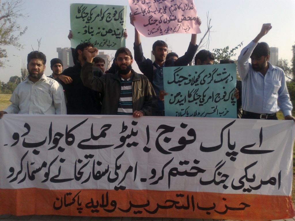 نظم حزب التحرير مظاهرات في بيشاور وكراتشي ولاهور وإسلام أباد للاحتجاج على مقتل العشرات من الجنود الباكستانيين من قبل حلف شمال الأطلسي في هجوم على مقاطعة مهمند. حيث حمل المتظاهرون لافتات كتب عليها شعارات مثل: "يا جيش باكستان! ردوا على هجوم حلف شمال الأطلسي، وأنهوا الحرب الأمريكية، واقتلعوا السفارة الأمريكية والقنصليات ". وقال المتحدثون: "لو اتخذ هؤلاء الحكام العملاء موقفا مشرفا على الهجوم على قاعدة أنجور وعملية أبوت أباد، وتعاملوا بسياسة العين بالعين والسن بالسن، لما تجرأت أمريكا على القيام بهذا الهجوم، وأنّ الخونة بين القيادة السياسية والعسكرية هم الذين يتحملون المسؤولية عن هذا الهجوم، فهم الذين شجعوا مرارا الولايات المتحدة على مهاجمة سابع أكبر قوة مسلحة في العالم والمدججة بالسلاح النووي، إنّ هؤلاء الخونة هم الذين يحافظون على خط إمدادات حلف الناتو، وهم الذين يمنحون تأشيرات دخول لعملاء شركة بلاك وتر وعملاء وكالة الاستخبارات المركزية، وهم الذين سمحوا بتوسيع السفارات ومكاتب القنصلية الأمريكية، وهم الذين سمحوا بوجود القوات الأمريكية في مقرات القيادة العسكرية العامة للبلاد، وما زالوا يقفون إلى جانب العدو في هذه الحرب الأمريكية ضد باكستان.."، كما دعوا الضباط المخلصين في القوات المسلحة الباكستانية إلى إعطاء النصرة على الفور إلى حزب التحرير لإقامة الخلافة، حيث يمكن للخلافة أن تنفذ هذه التدابير، وإجبار أمريكا على الخروج من هذه المنطقة كالكلب المسعور.
