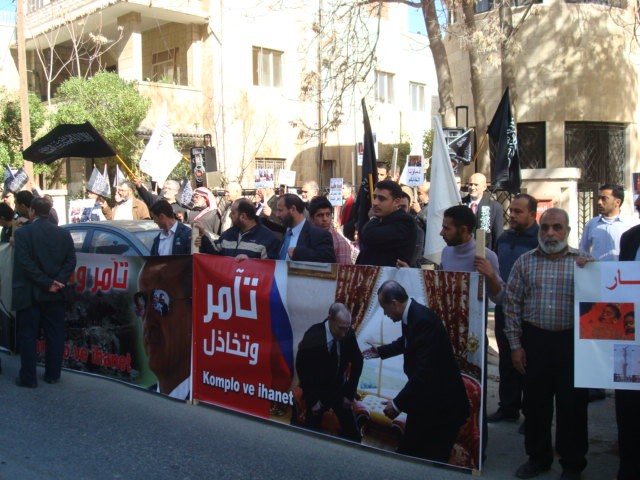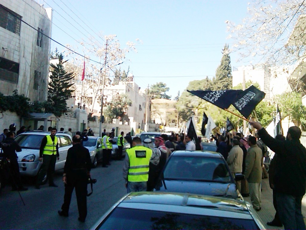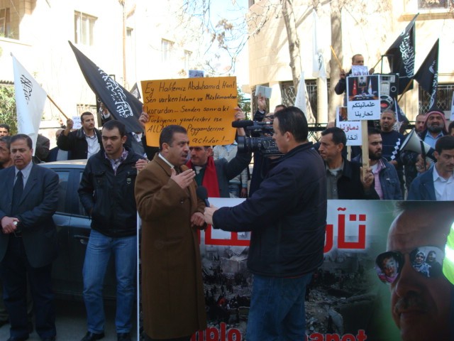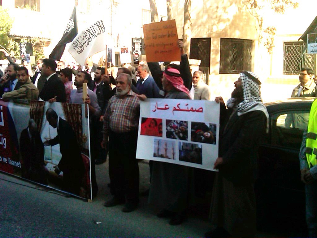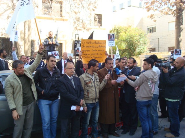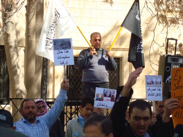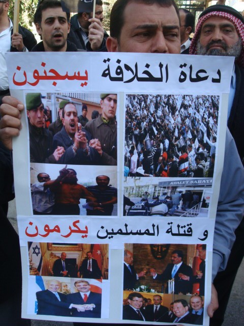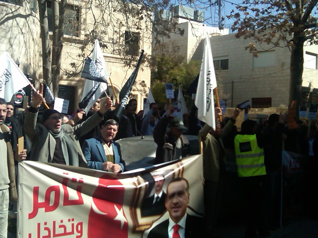 وسط حضور أمني كثيف أقام حزب التحرير في الأردن وقفة استنكار لمواقف حكام تركيا المتخاذلة عن نصرة أهل الشام، والتآمر على ثورتهم لصالح أمريكا والغرب الكافر، وقيامهم في المقابل بشن حرب على شباب حـزب التحرير