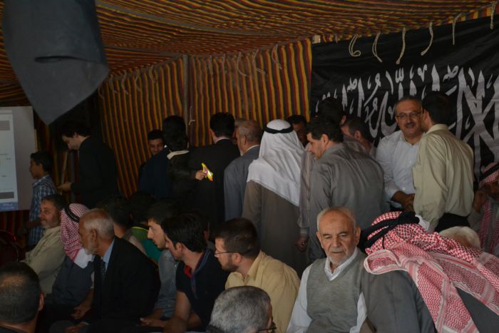 وقد ألقى عضو المكتب الإعلامي لحزب التحرير / ولاية الأردن الأستاذ إبراهيم حجات كلمة المكتب الإعلامي لحزب التحرير ولاية الأردن هنئ فيها أمير حزب التحرير العالم عطاء بن خليل أبو الرشتة وهنئ شباب حزب التحرير والمسلمين جميعاً بحلول عيد الأضحى المبارك ومذكراً بشباب حزب التحرير الأوائل الذين قدموا التضحيات حتى وصلت الدعوة إلى ما وصلت إليه اليوم وعلى رأسهم الشيخ تقي الدين النبهاني والشيخ عبد القديم زلوم رحمهما الله. ومذكراً الشباب على العمل والجد لقيادة الأمة إلى بر الأمان في ظل مطالبة الأمة بأن تحكمها عقيدتها ومبدأها وخاصة في الشام التي تأبى أن تستبدل طاغوتاً بطاغوت وكافراً بكافر وتبعية بتبعية، سائلاً الله عز وجل أن يكرم أهل الشام وحملة دعوة الخلافة بالنصر وبقيام دولة الخلافة.