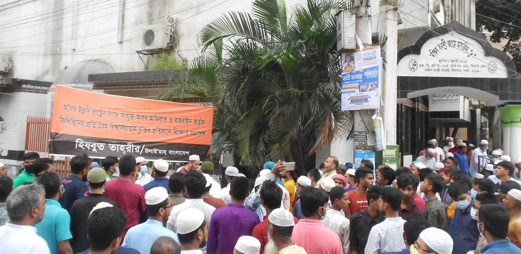 نظّم حزب التحرير/ ولاية بنغلادش اليوم الجمعة 2020/09/25 وقفات احتجاجية في مساجد مختلفة في دكّا وشيتاجونغ ضد اتفاقية الخيانة الإماراتية والبحرينية مع كيان يهود. وقال المتحدثون: يوم الثلاثاء الماضي 2020/09/15 وقّعت الإمارات والبحرين في تلك العاصمة السوداء واشنطن اتفاقية الخيانة العظمى لمسرى رسول الله ﷺ ومعراجه دون خشية من الله ورسوله والمؤمنين! كما فضح المتحدثون حكام المسلمين الآخرين فقالوا: إن الذين لم يوقعوا اتفاقيات معلنة بعدُ ليسوا دون الموقعين درجة، فعُمان تستضيف وتضاف مع دولة يهود، وقطر وسيط (نزيه) بين يهود وغزة! والنظام السعودي في بلاد الحرمين أجواؤه مفتوحة لطائرات الدولة المسخ المحتلة لقدس أقداس المسلمين!! ثم النظام التركي لا زال يعترف بدولة يهود المحتلة لفلسطين!