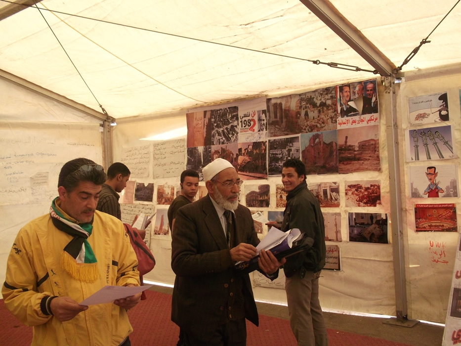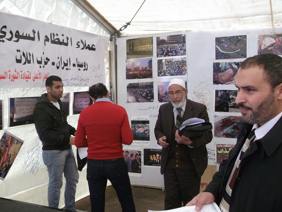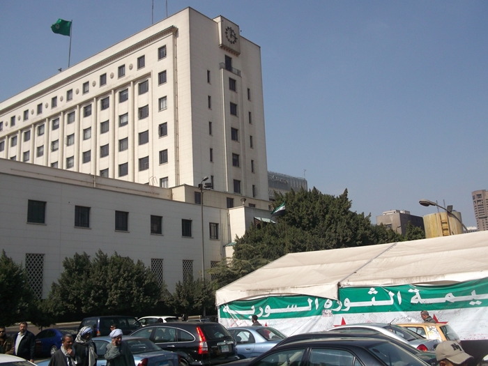 وفد من شباب حزب التحرير يسلم "الجامعة العربية" بيانا لنصرة أهل الشام، أصدره الحزب ووزعه في محيطها وفي ميدان التحرير