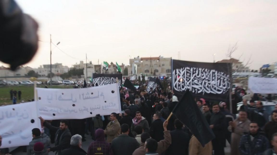 بدعوة من حزب التحرير- ولاية الأردن جموع احتشدت أمام سفارة نظام (الأسد) المجرم
