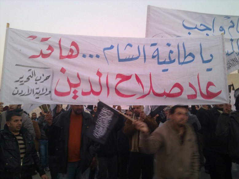 وانتهت هذه الوقفة وقد سمع فيها أعداء الله ما يكرهون، وهتفت فيها حناجر المشاركين من أهل الأردن وأهل الشام هتافا اهتزت له أركان المكان (ما في حل إلا الخلافة)، وتعالت صيحات التكبير رغم أنف الظالمين، هذا ونسأل الله العظيم أن ينصر إخواننا في الشام على الطاغية بشار نصرا مؤزرا، وأن يمحق بشار وجنده، ويرينا فيهم عزته وجبروته، ونسأله سبحانه أن تبقى الثورة السورية خالصة لوجهه الكريم، وأن يجنبها المتسلقين والمتاجرين بدماء الشهداء، وأن يجعل خاتمتها قيام دولة الخلافة على منهاج النبوة، إنه على ما يشاء قدير، والحمد لله رب العالمين.