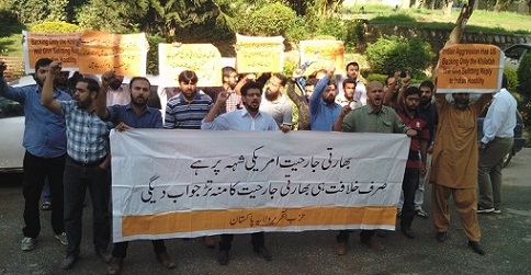 تظاهر حزب التحرير/ ولاية باكستان في روالبندي - إسلام أباد ضد العدوان الهندي على خط المراقبة والحدود الفاصلة بين البلدين. وقد حمل المتظاهرون رايات ولافتات كُتب عليها: "العدوان الهندي مدعوم من قبل الولايات المتحدة، وبالخلافة وحدها يتم الرد على العداء الهندي بما يليق به"، و"السكوت على العدوان الهندي هو خيانة لباكستان والمسلمين والإسلام".