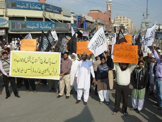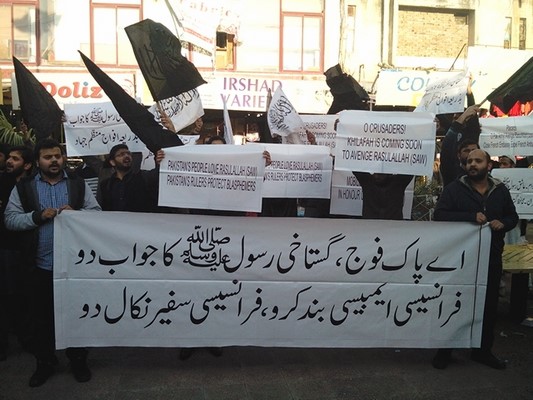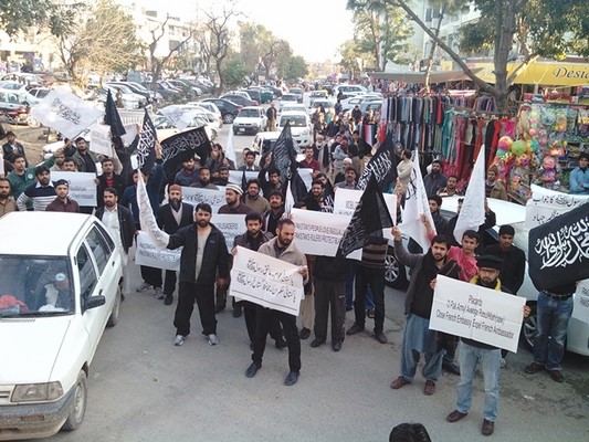 نظّم حزب التحرير في ولاية باكستان مظاهرات في جميع أنحاء باكستان احتجاجا على نشر الرسوم الكاريكاتورية المسيئة لنبي الله محمد صلى الله عليه وسلم في المجلة الفرنسية (شارلي إيبدو)، وضد الدعم الذي تقدمه الحكومة الفرنسية لهذا الفعل الشنيع. وحمل المشاركون لافتات كُتب عليها: "يا جيش باكستان! انتصر لرسول الله صلى الله عليه وسلم، وأغلق السفارة الفرنسية واطرد السفير الفرنسي"، و"فلتُحشد الجيوش للجهاد للذود عن شرف النبي محمد صلى الله عليه وسلم".