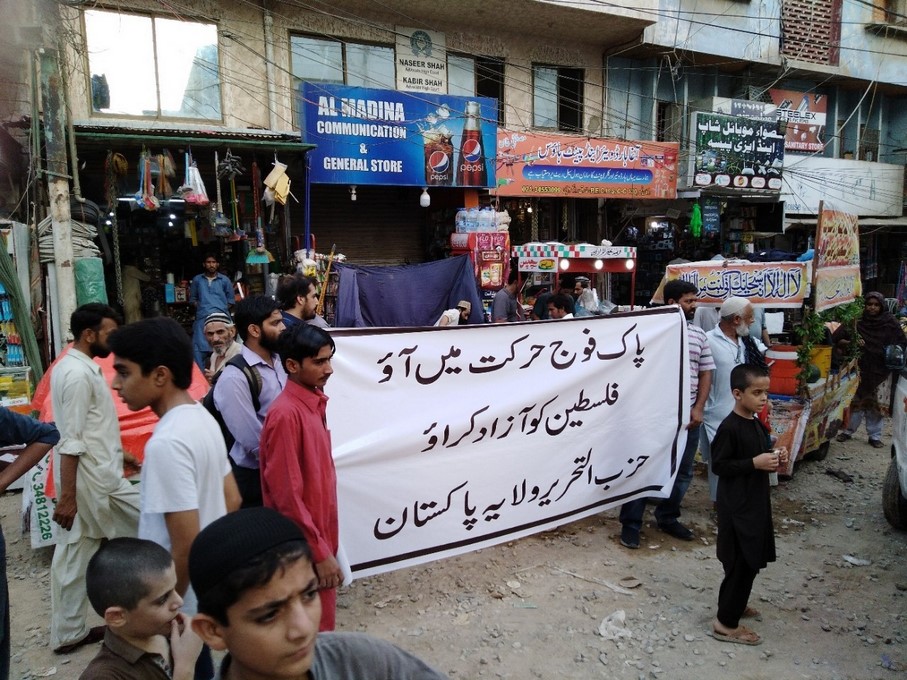 نظّم حزب التحرير/ ولاية باكستان مظاهرات في المدن الرئيسية في باكستان من أجل الحشد لتحرير الأقصى والأرض المباركة فلسطين. وحمل المتظاهرون لافتات كتب عليها: "طالبوا الجيش الباكستاني بالحشد من أجل تحرير فلسطين" و"لن يتم تحرير فلسطين من قبل الأمم المتحدة أو منظمة المؤتمر الإسلامي، بل من خلال الجهاد المنظّم في ظل الخلافة".