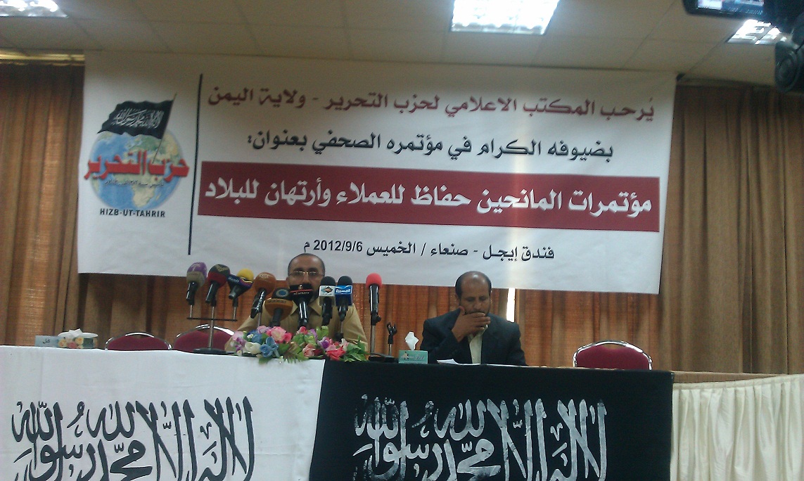 إن حزب التحرير - ولاية اليمن، في ختام مؤتمره الصحفي بعنوان "مؤتمرات المانحين حفاظ للعملاء وارتهان للبلاد" الذي عقد يوم الخميس بتاريخ 6-9-2012 بعد يوم على انعقاد مؤتمر الرياض لأصدقاء اليمن يومي الثلاثاء والأربعاء 4 و5 -9-2012 يؤكد على: