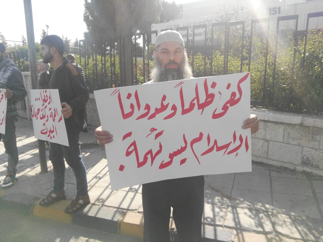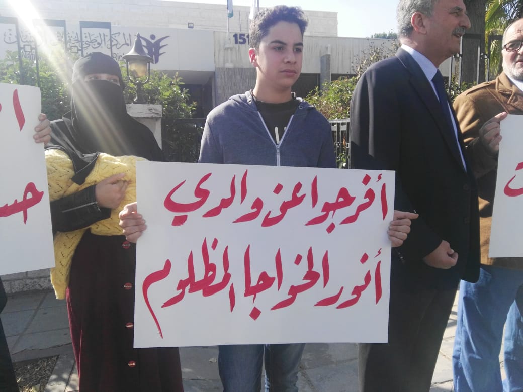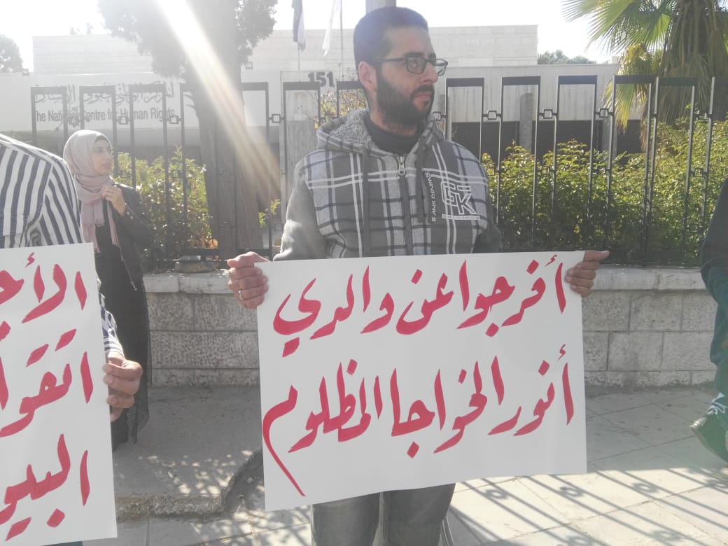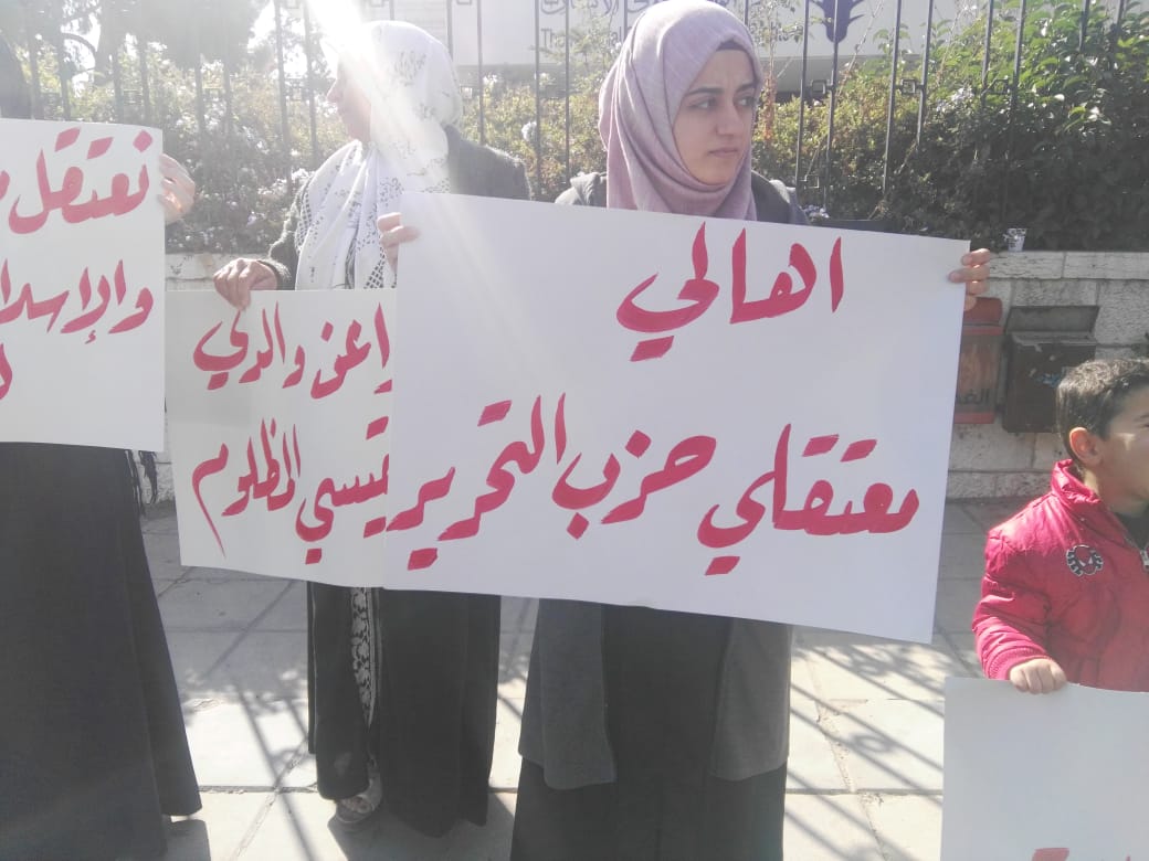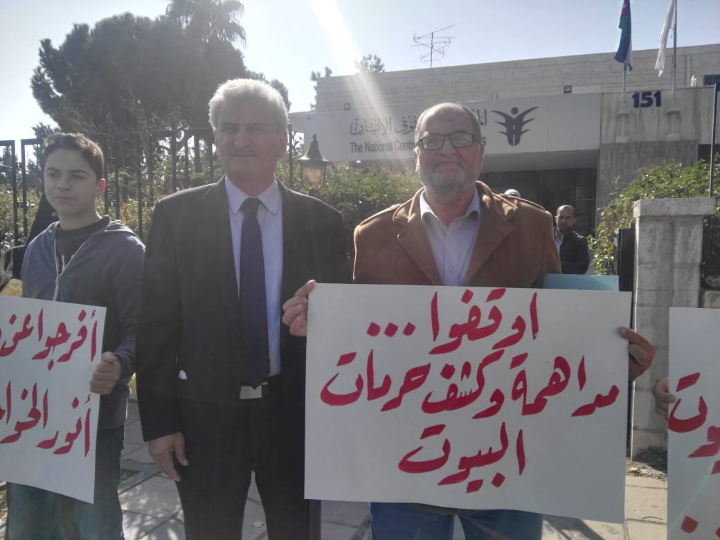 أقام أهالي معتقلي حزب التحرير وقفة احتجاجية اليوم الأحد أمام المركز الوطني لحقوق الإنسان في العاصمة عمان، منددين بما قالوا إنه "انتهاك لحرمات البيوت من خلال الاعتقالات المفاجئة، واقتحام منازل المطلوبين السياسيين بدون استئذان".