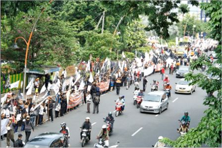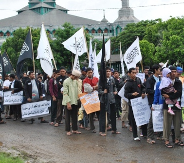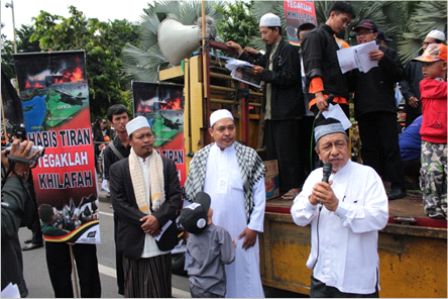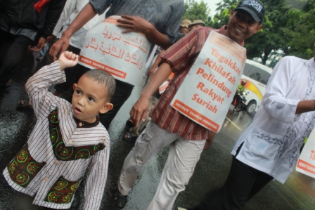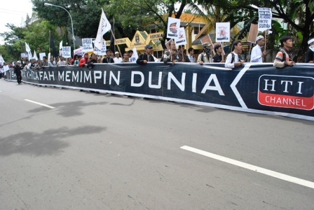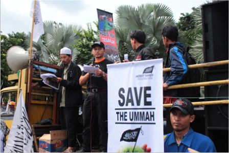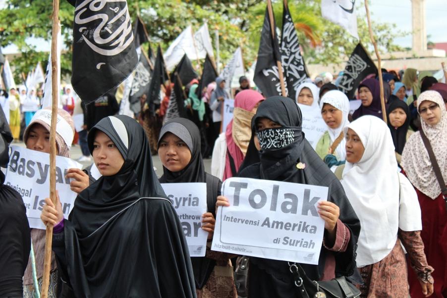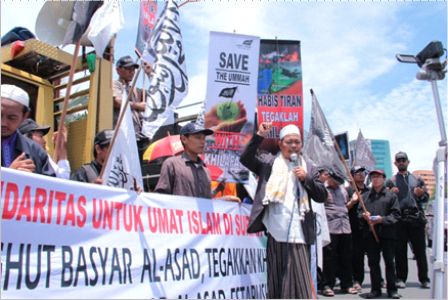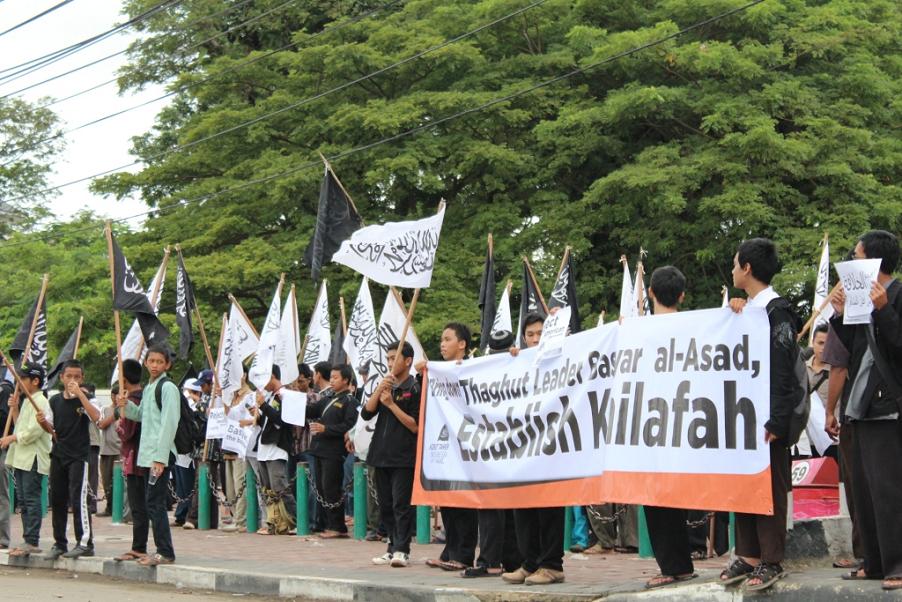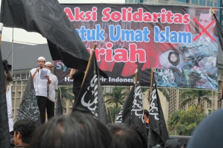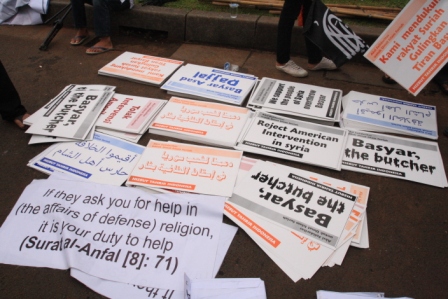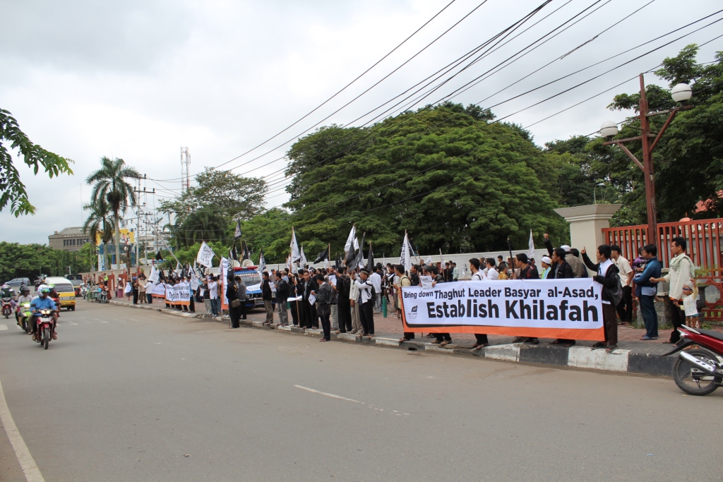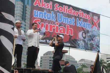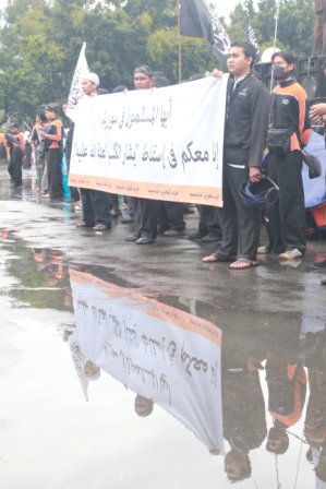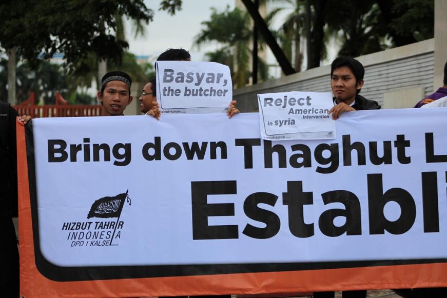 نظم حزب التحرير إندونيسيا عشرات من الاحتجاجات والخطب في كل من مدن : جاكرتا، ميدان، يوجياكارتا، سورابايا، بانجارماسين، ماكاسار وكيندارى وسار فيها الآلاف من المسلمين نصرة لإخوانهم . وجرت الاحتجاجات لوضع حد لوحشية نظام الأسد نحو المسلمين في سوريا وتقديم الدعم لهم لاسقاط نظام حكم بشار الأسد وإقامة الخلافة الإسلامية.