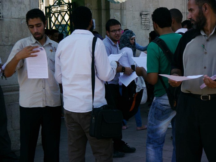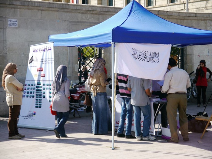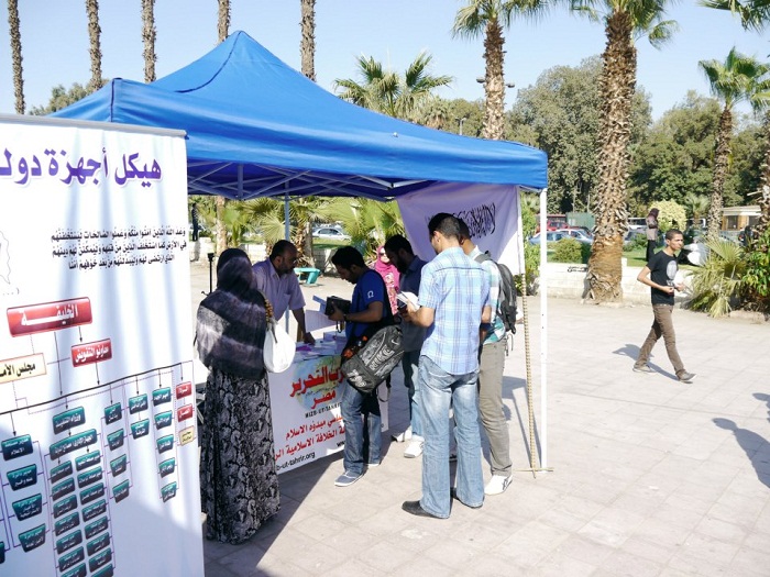 مواصلة للحملة التي باشر تنظيمها حزب التحرير/ولاية مصر للتعريف بمشروع دستور دولة الخلافة تحت شعار "دستور مصر يجب أن يكون دستوراً إسلامياً"، قام شباب الحزب يوم الأربعاء 24 ذو القعدة 1433هـ الموافق 10 تشرين أول/أكتوبر 2012م بنصب خيمتهم المتحركة أمام البوابة الرئيسية لجامعة القاهرة، حيث قاموا إلى جانب توزيع البيان الصحفي والكتيب بخوض نقاشات هامة بناءة مع طلبة العلم الذين واصلوا توافدهم على الخيمة بأعداد كبيرة.