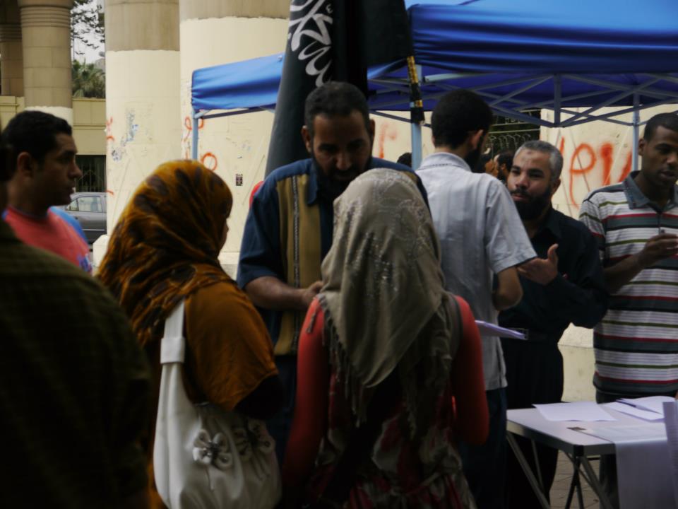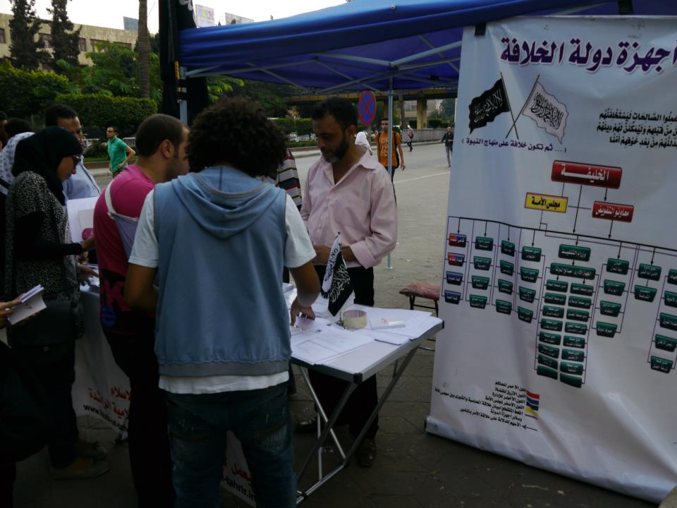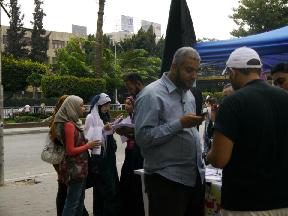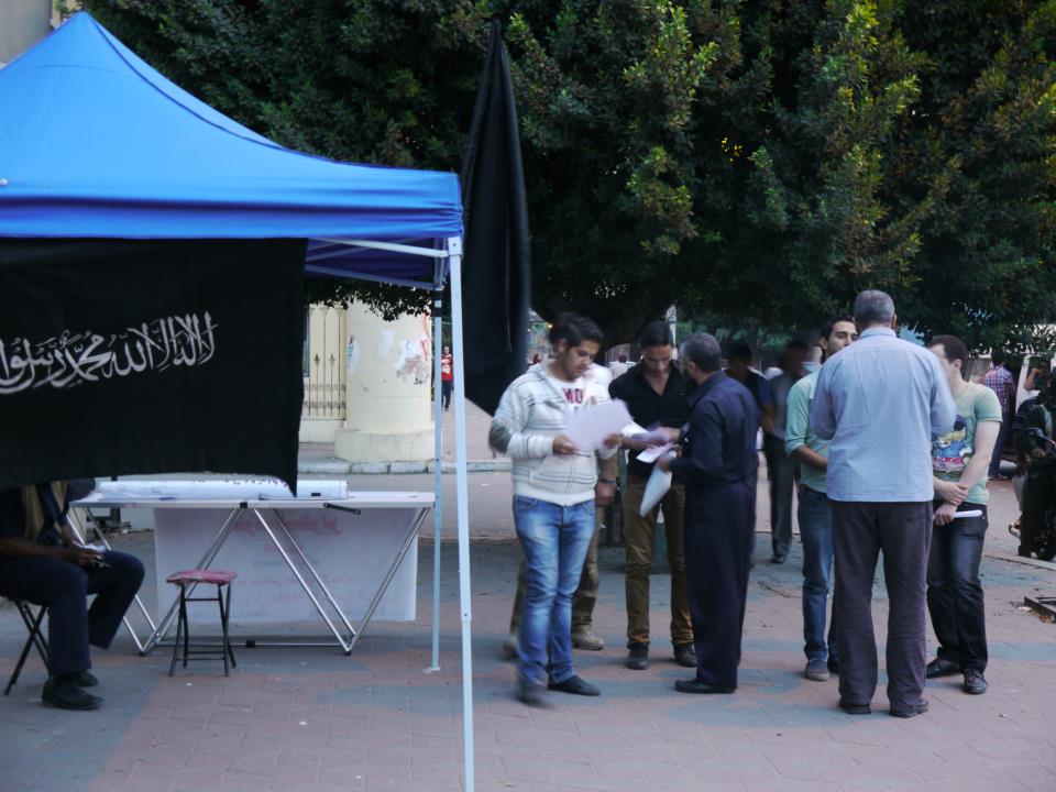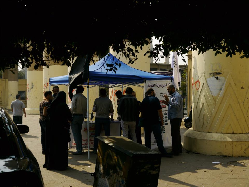 استكمالاً للحملة التي باشر تنظيمها حزب التحرير/ولاية مصر للتعريف بمشروع دستور دولة الخلافة تحت شعار "دستور مصر يجب أن يكون دستوراً إسلامياً"، قام شباب الحزب يوم الأربعاء 08 ذو القعدة 1433هـ الموافق 24 تشرين الأول/أكتوبر 2012م بنصب خيمتهم المتحركة أمام جامعة عين شمس، حيث خاضوا نقاشات بناءة مع طلبة العلم الذين واصلوا توافدهم على الخيمة، والحمد لله رب العالمين.
