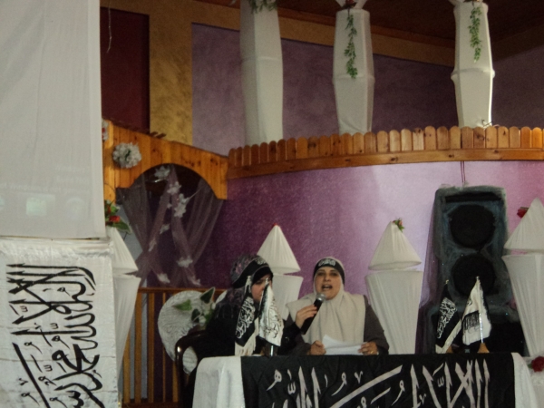 بعون الله وتوفيقه عقدت شابات حزب التحرير في قطاع غزة ندوة نسائية يوم الأحد 21 ربيع الثاني 1434هـ الموافق 03 آذار/مارس 2013م بعنوان "وجاءت ثورة الشام بالحق" حضرتها المئات من الأخوات اللواتي تأثرن بما شاهدنه وسمعنه أثناء عرض الفيلم الوثائقي الذي تحدث عن أهل الشام وثوارها وهم يرفعون رايات العقاب ويطالبون بإقامة دولة الإسلام (الخـلافة) وتطبيق الشريعة الإسلامية. وكانت الأجواء الإيمانية مهيمنة على الندوة والحمد لله رب العالمين.