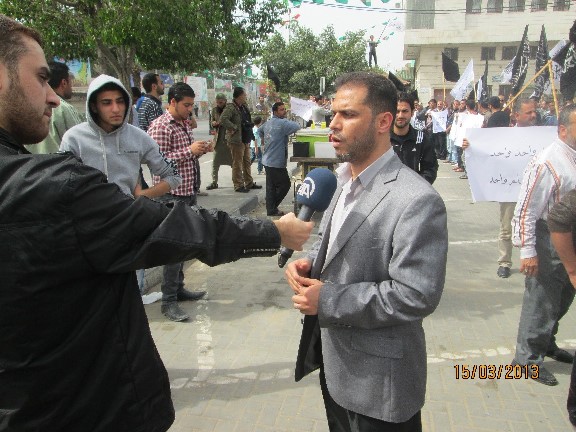 نظم حزب التحرير في مدينة غزة وقفة تضامنية مع الثورة السورية في الذكرى الثانية لانطلاقها، وذلك اليوم الجمعة 03 جمادى الأولى 1434هـ الموافق 15 آذار/مارس 2013م في ميدان فلسطين وسط غزة.