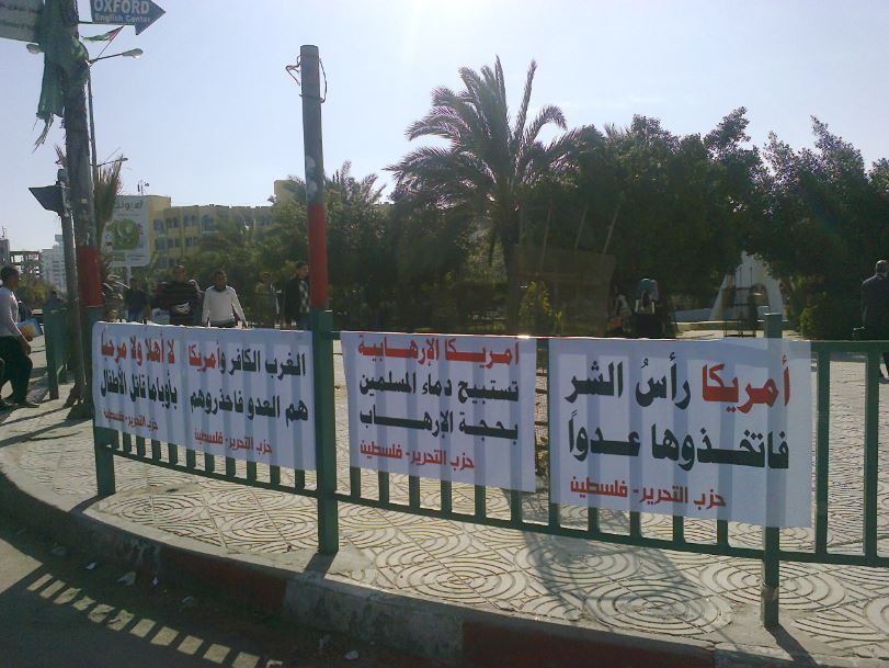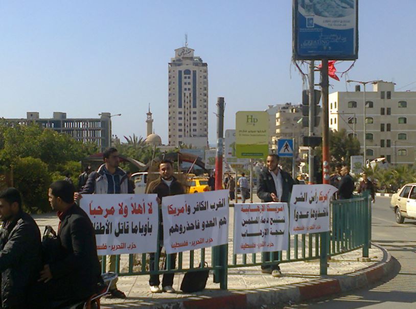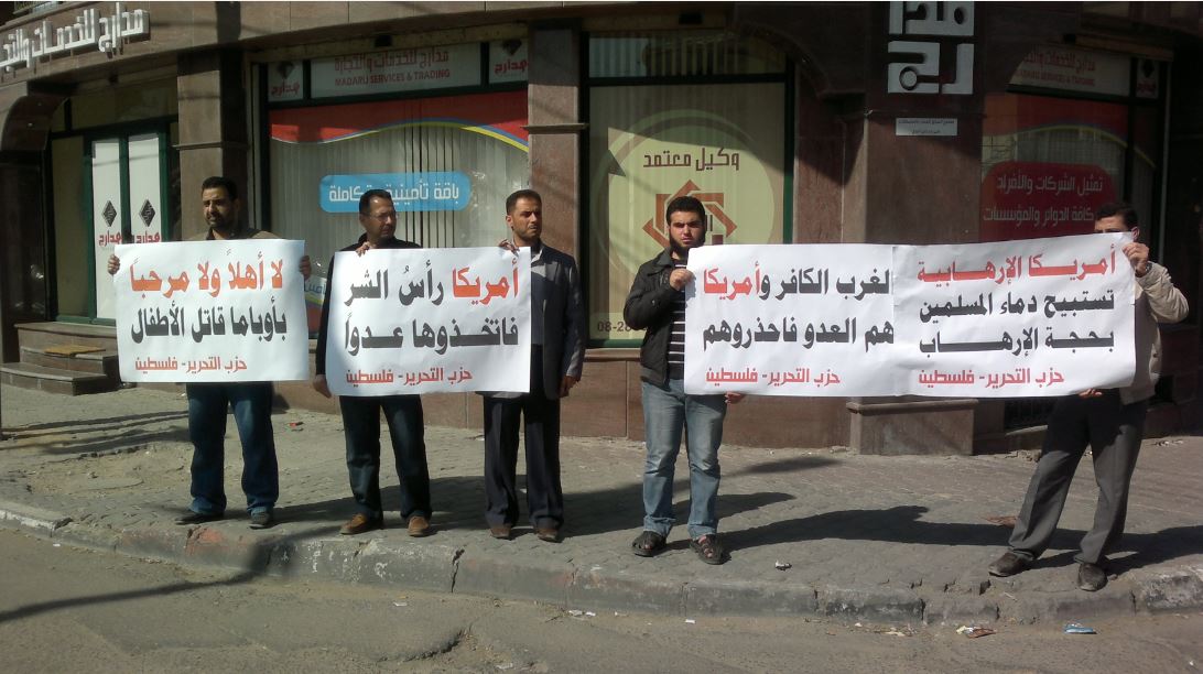 مكتب فلسطين: من غزة "لا أهلاً ولا سهلاً بك أوباما" حزب التحرير ينظم وقفات رمزية في قطاع غزة رفضًا لزيارة أوباما