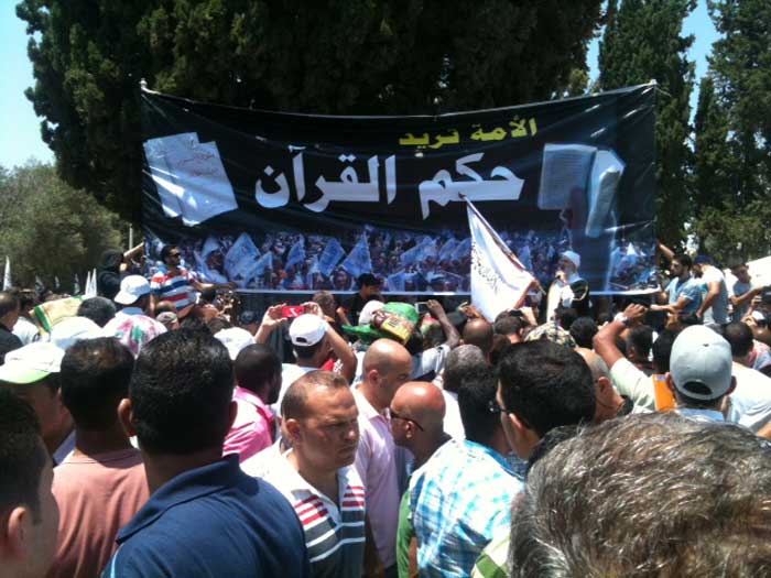 بعد انتهاء صلاة الجمعة الأولى من رمضان في المسجد الأقصى المبارك، صدعت حناجر حملة الدعوة وأنصار حزب التحرير، بالتكبير والهتاف وبشعارات تبعث العزة والبشرى للمسلمين "خربت أمريكا، خربت فرنسا، خربت بريطانيا، فتحت روما،...".