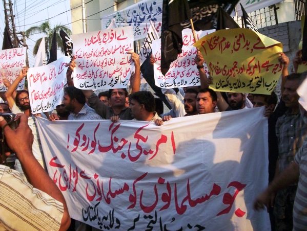 طالب حزب التحرير ولاية باكستان في المسيرات أن يتوقف الجيش عن قيامه بقتل إخوانه بالنيابة عن أمريكا، وطالب بعدم السماح لان يكون الجيش وقودا لحرب اوباما الصليبية. كما طالب الحزب بكنس الوجود ألاستخباراتي والعسكري والسياسي الأمريكي من البلاد وهو الذي تسبب في خلق حالة الفوضى في البلاد منذ أن بدأت أمريكا حملتها الصليبية على المنطقة.