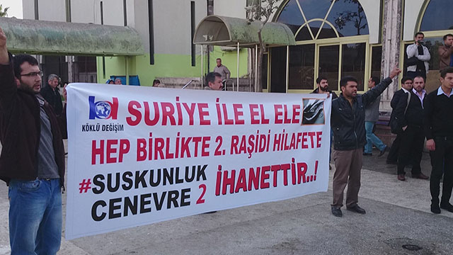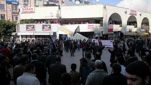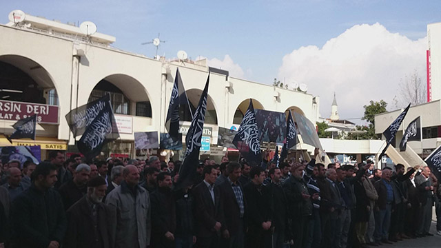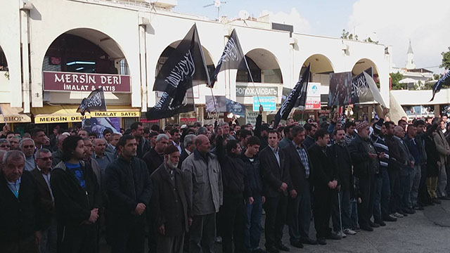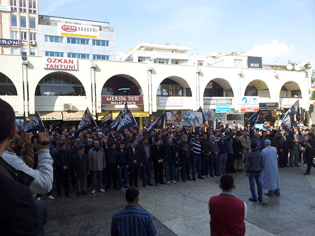 ولاية تركيا: وقفة مرسين "السكوت خيانة!" نظم حزب التحرير / ولاية تركيا وأنصاره عقب صلاة الجمعة في جامع أُلو بمرسين وقفة لنصرة الإسلام والمسلمين خصوصاً لنصرة أهل الشام وثورتهم المخلصة، أقيمت فيها صلاة الغائب على قتلى المسلمين. الجمعة، 23 ربيع الأول 1435هـ ا