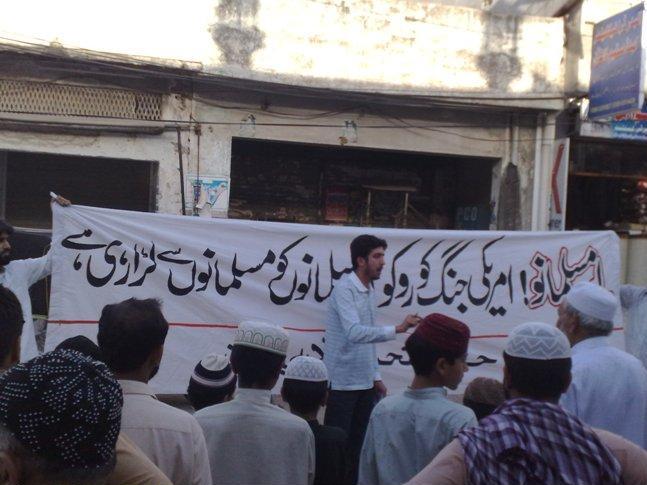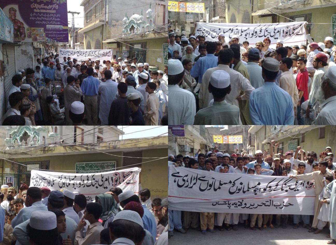 في 14/5/2009 انضم مئات من المسلمين للمسيرة التي نظمها حزب التحرير- باكستان في العاصمة إسلام أباد للاحتجاج على حرب أمريكا التي أوقعت بالمسلمين بعضهم ببعض. طالب المتظاهرون وقف الحرب الأمريكية حالا، وطالبوا بعدم استخدام أبناءنا من الجيش الباكستاني وقودا لحملة اوباما الصليبية الفاشلة.